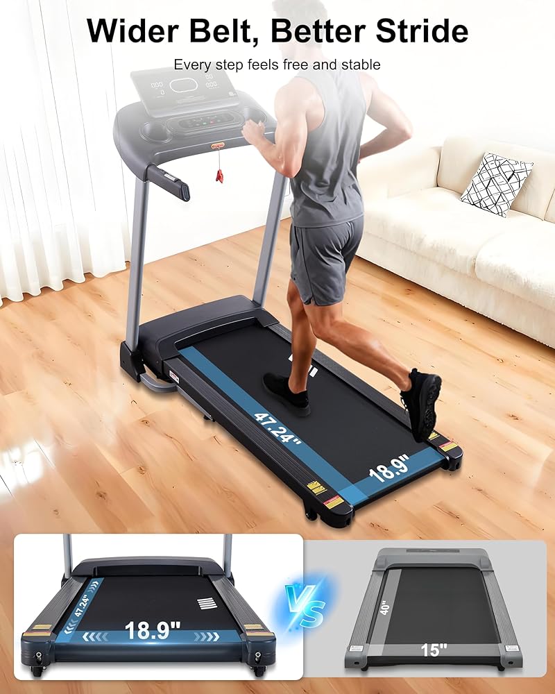 【جهاز مشي بحزام عريض】مصمم بسطح جري عريض مقاس 47.24 بوصة × 18.90 بوصة وسطح سميك بقياس 5.9 بوصة، يوفر جهاز المشي ذو الحزام العريض هذا ثباتًا وراحة ممتازين. يعمل نظام امتصاص الصدمات المدمج على تقليل إجهاد المفاصل، مما يوفر تشغيلًا أكثر سلاسة وأمانًا لكل خطوة.