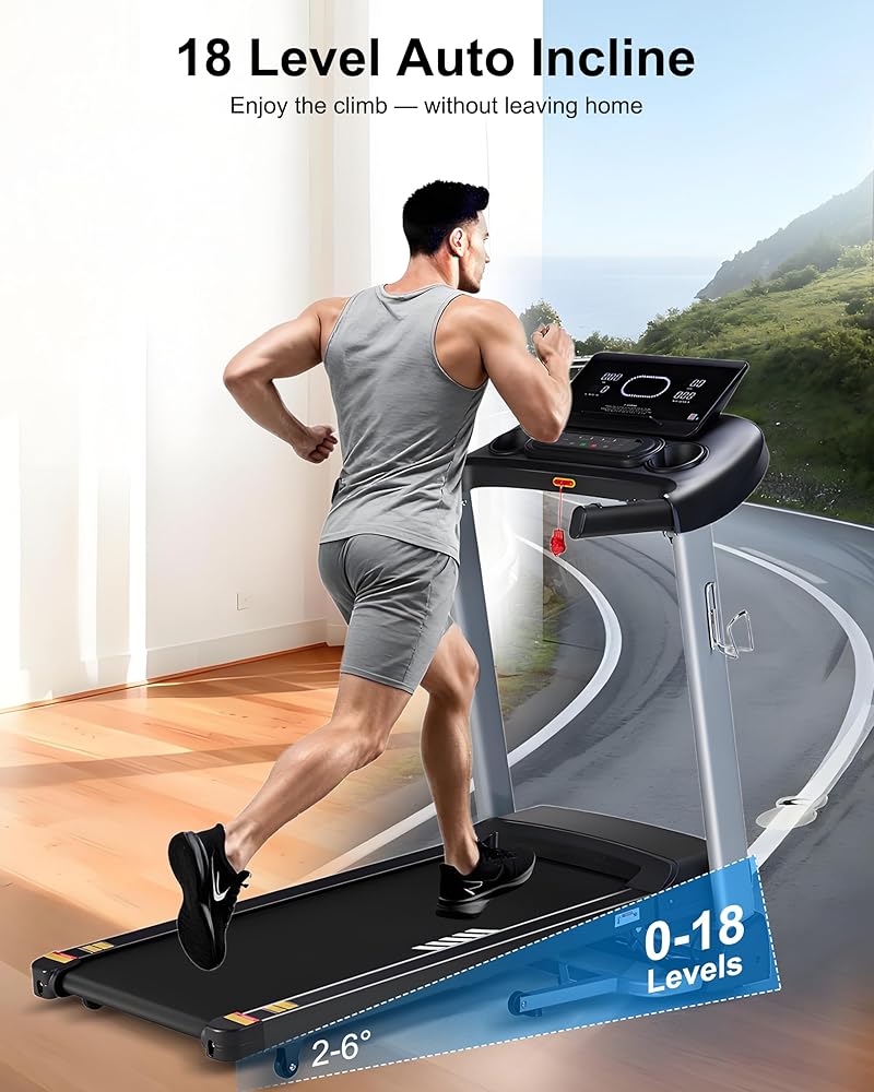 جهاز مشي عالي التحمل للمنزل، 18% انحدار تلقائي، سعة 400 رطل، 3.5 حصان، سرعة 0.5-12 ميل في الساعة، حزام عريض 18.9 بوصة، 36 برنامج، جهاز تشغيل تطبيق بلوتوث