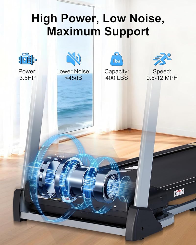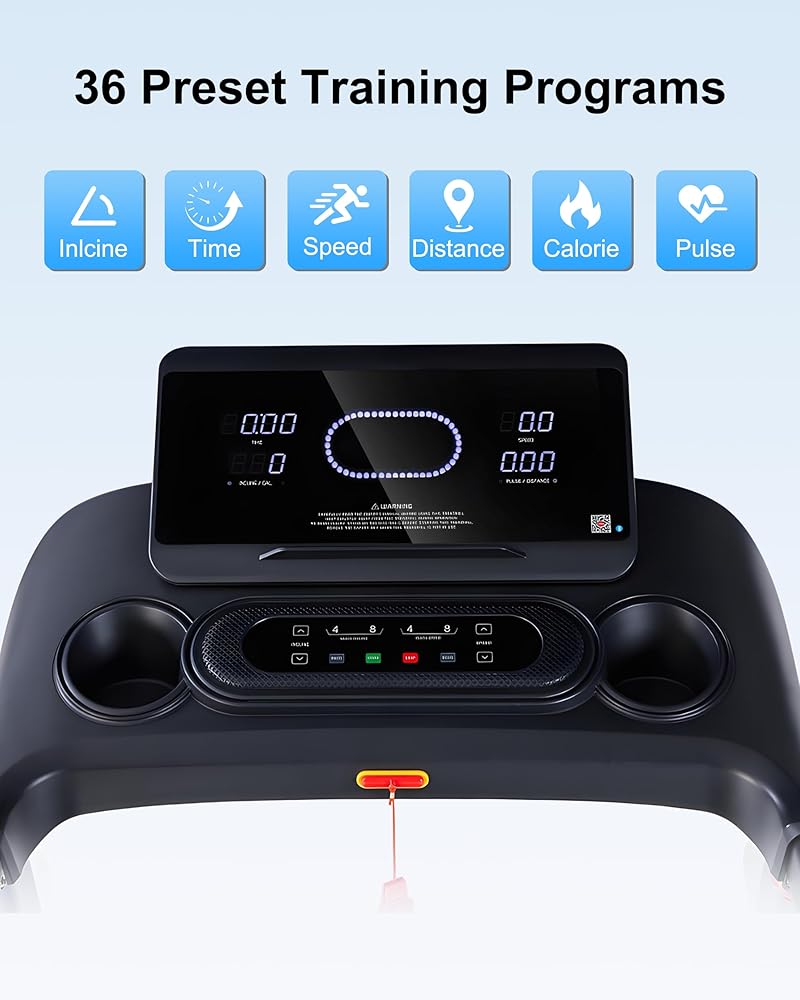 【محرك قوي وهادئ بقوة 3.5 حصان】يوفر المحرك بقوة 3.5 حصان تشغيلًا سلسًا وهادئًا من 0.5 إلى 12 ميلاً في الساعة، وهو مثالي للمشي أو الركض أو الجري عالي الكثافة. مع 36 برنامجًا للتمرين مُعدة مسبقًا، يمكنك تخصيص روتين اللياقة البدنية الخاص بك والبقاء متحفزًا في كل مرة.