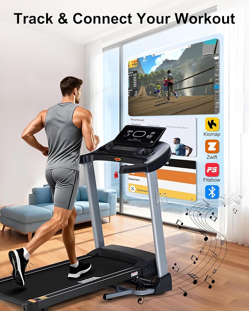 [اتصال بلوتوث ذكي] يتصل جهاز المشي الذكي هذا بتطبيقات اللياقة البدنية لتتبع السرعة والوقت والمسافة والسعرات الحرارية في الوقت الفعلي. استخدم ميزة البلوتوث لتشغيل الموسيقى المفضلة لديك أو التدريب الصوتي، مما يجعل التدريبات أكثر متعة وتحفيزًا.
