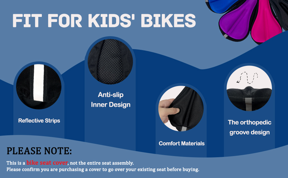 مناسب تمامًا لدراجات الأطفال: تم تصميم غطاء المقعد المريح هذا حصريًا للراكبين الصغار، ويتميز بتصميم عالمي مقاس 9 × 6 بوصة ليناسب معظم سروج دراجات الأطفال بشكل مريح. يرجى ملاحظة: هذا المنتج عبارة عن غطاء مقعد دراجة، وليس مقعد دراجة كامل. نطلب منك التحقق مرة أخرى من حجم مقعد الدراجة الخاص بك قبل الشراء لضمان ملاءمته المثالية.