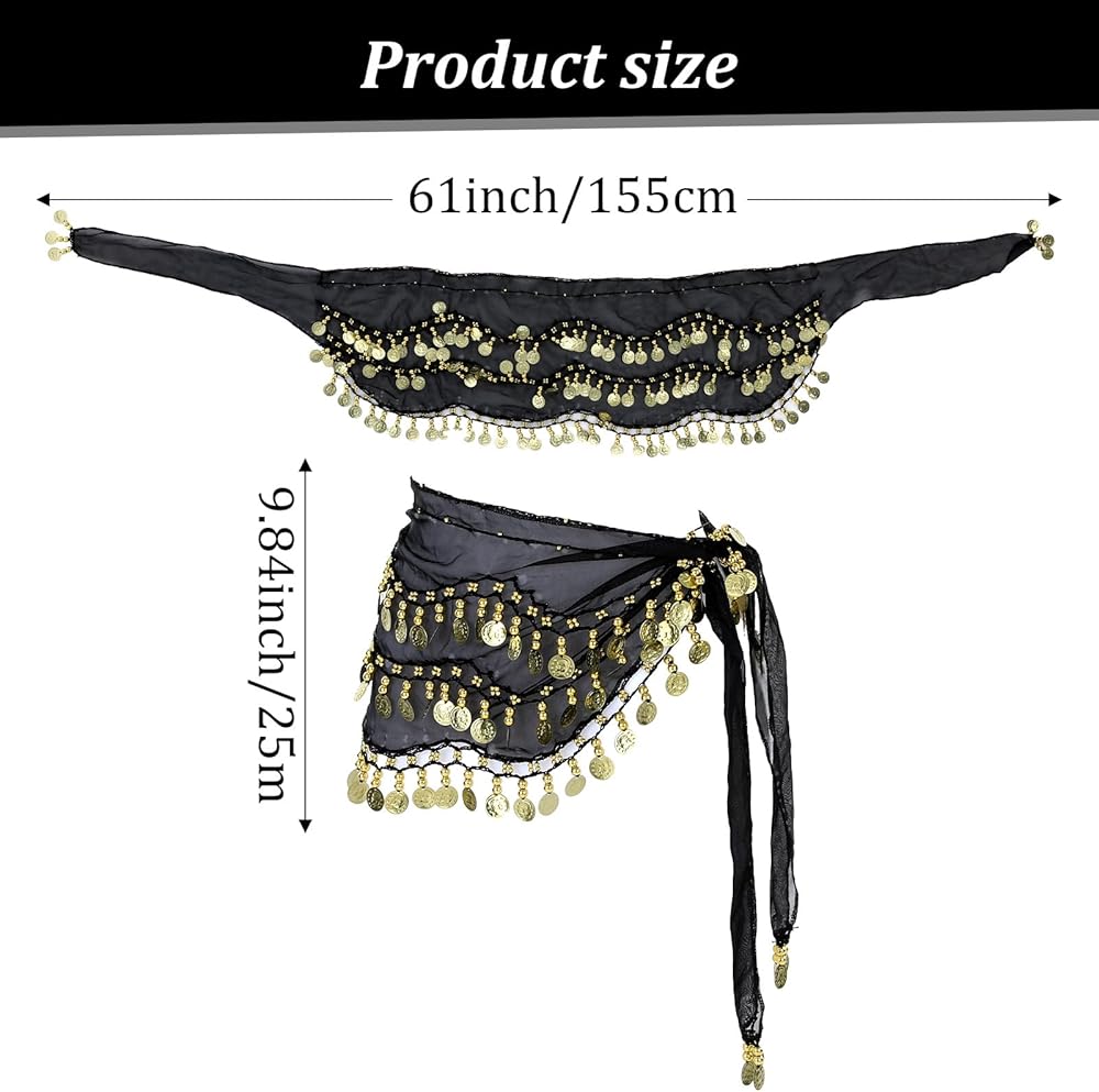 Authentic Belly Dance Accessory: This traditional belly dance hip scarf features 128 gold coins and shimmering sequins that create movement and sound, enhancing the visual appeal of belly dancer outfit performances.