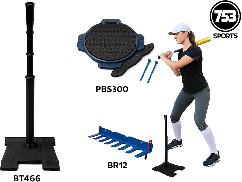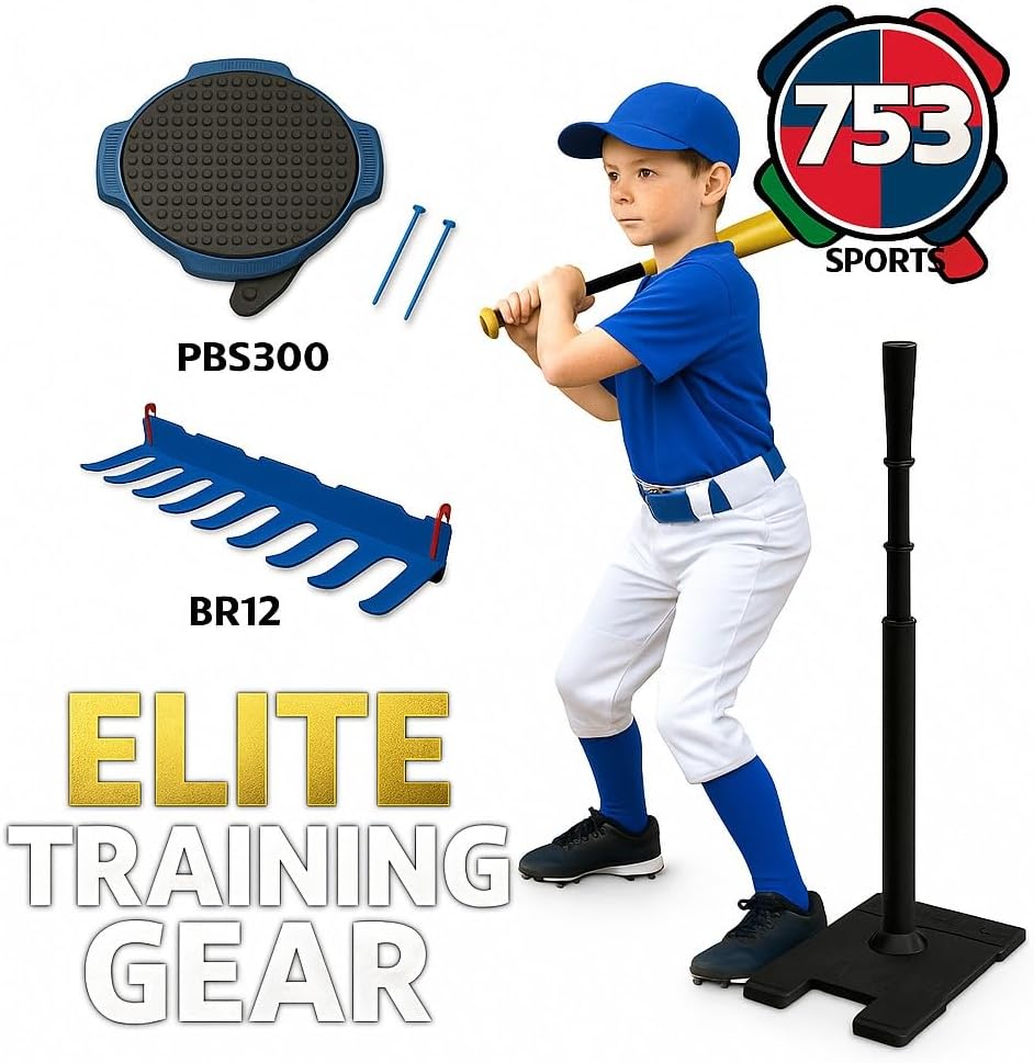 Take your hitting skills to the next level with the 753 Sports Baseball Training Combo, designed for serious baseball and softball players who want to train like the pros. This all-in-one training bundle includes a Power Hitter Plate, a height-adjustable Batting Tee, and a sturdy Batting Rack—providing a complete setup for improving power, technique, and consistency at the plate. What's Included: Power Hitter Plate – Train proper stance, balance, and weight transfer for stronger, more accurate hits. Adjustable Batting Tee – Customize tee height for all pitch zones, ideal for players of all levels. Batting Rack – Conveniently holds your bats and gear, keeping your training area organized and efficient.