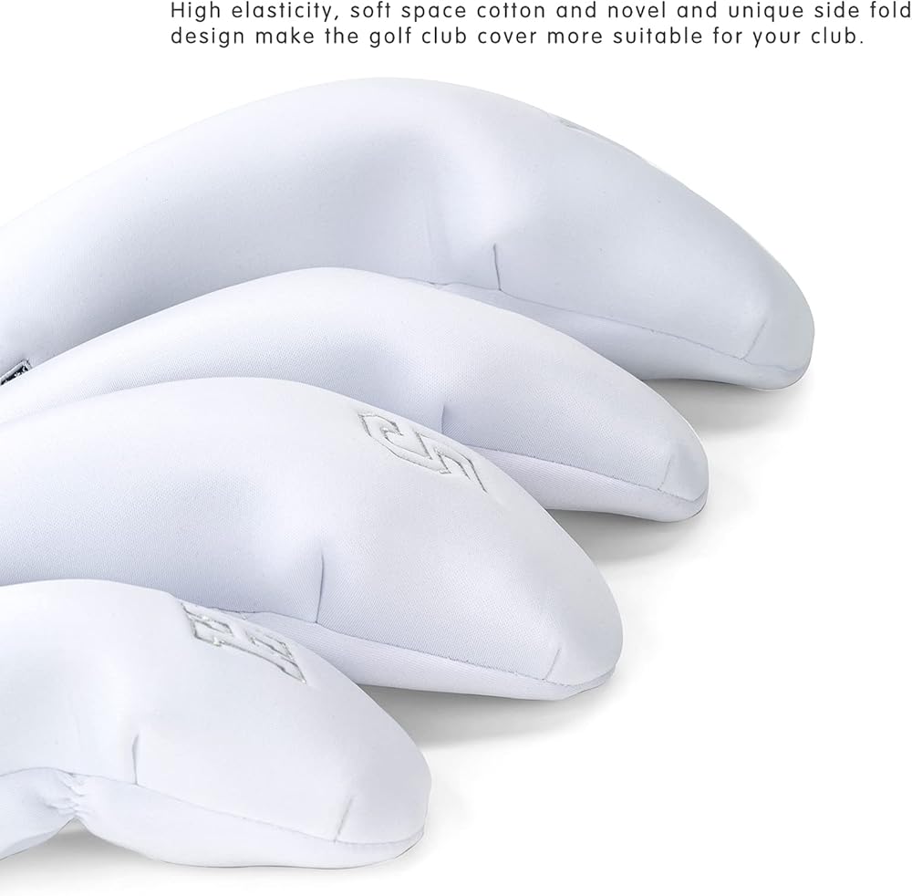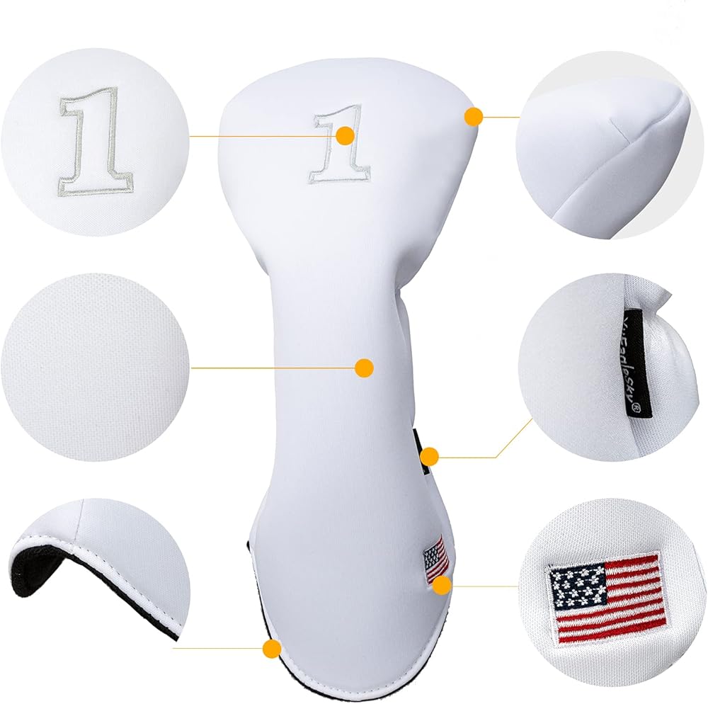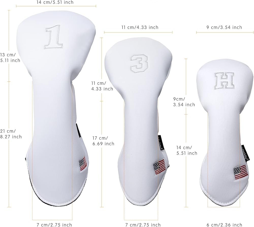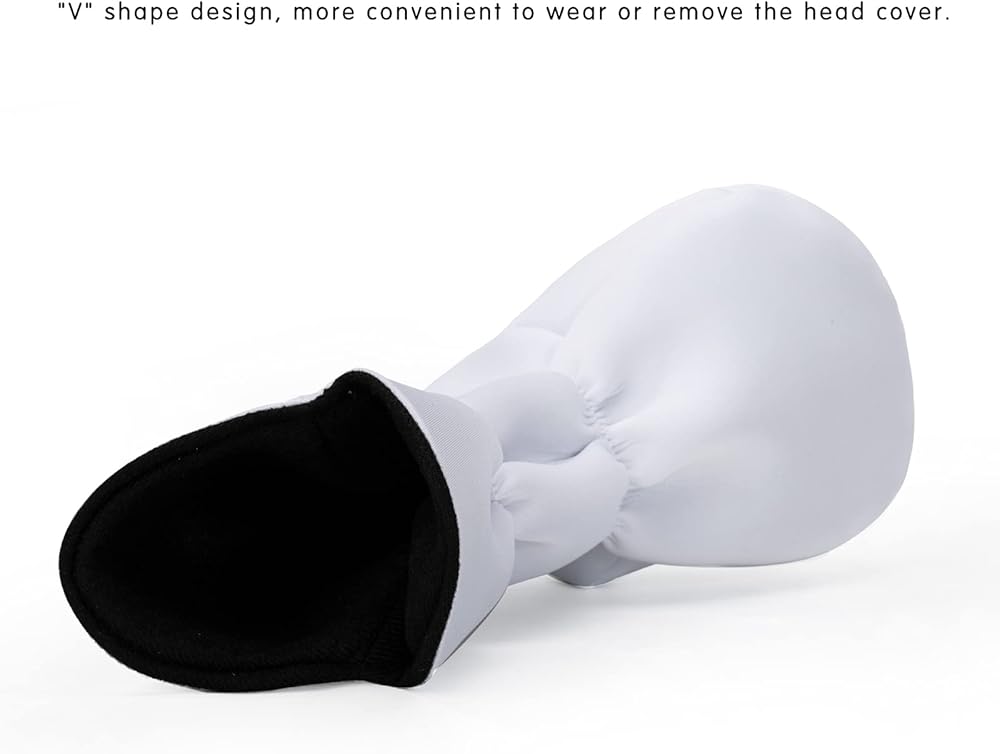• ملاءمة مثالية: التصميم المفتوح على جانبي غطاء نادي الجولف يجعل غطاء الرأس أسهل في الحمل والارتداء. يمكن للشريط المطاطي الموجود على الكم أن يلف رأس الجولف بإحكام أكبر.