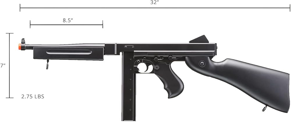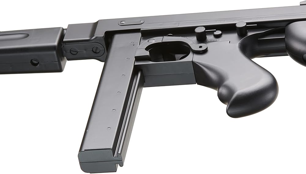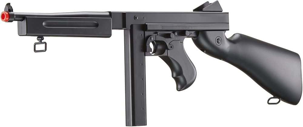 The D98 M1A1 Submachine Gun AEG is a replica of one of the most prominent SMGs during World War II off and on the battlefield. Firing in both semi- and full-automatic, this M1A1 AEG comes with a 1,000-round drum magazine, which many players should find more that sufficient to provide cover fire or lead the assault! If you do run out of rounds, a 30-round spare straight magazine is also included at your disposal.