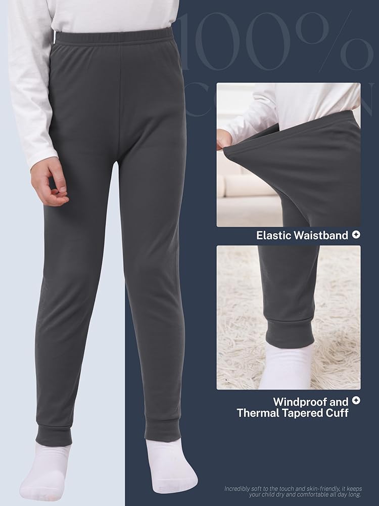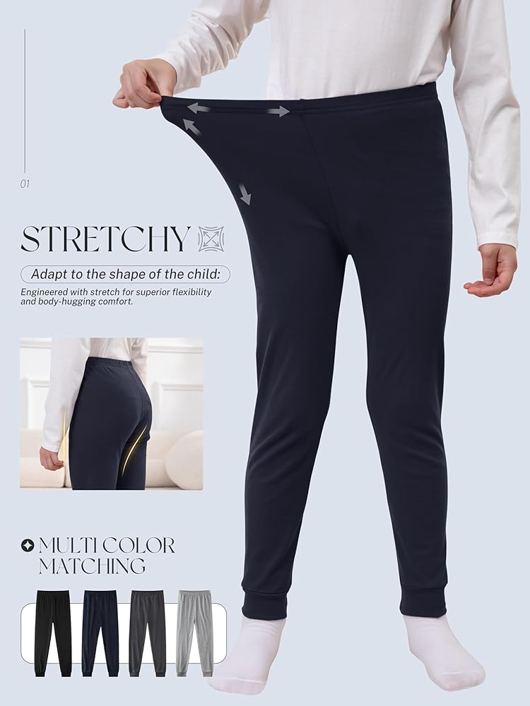 تصميم ملائم مدروس: تتميز السراويل الحرارية للأولاد بحزام خصر مرن واسع وكاحل بأساور، قصة مريحة تناسب الأولاد النشيطين الذين لديهم غرفة نمو