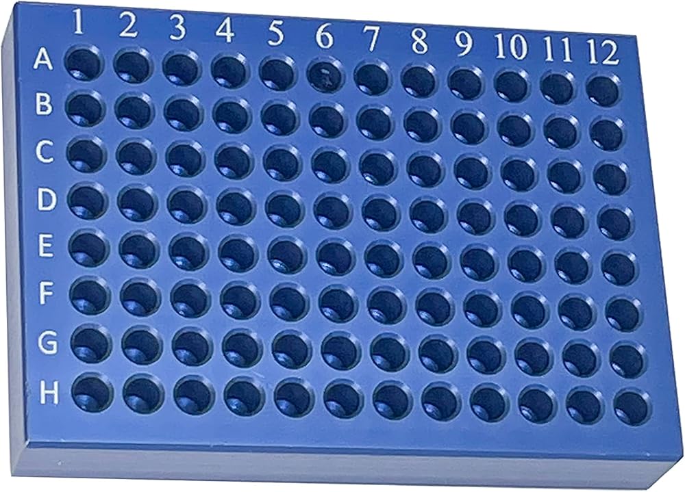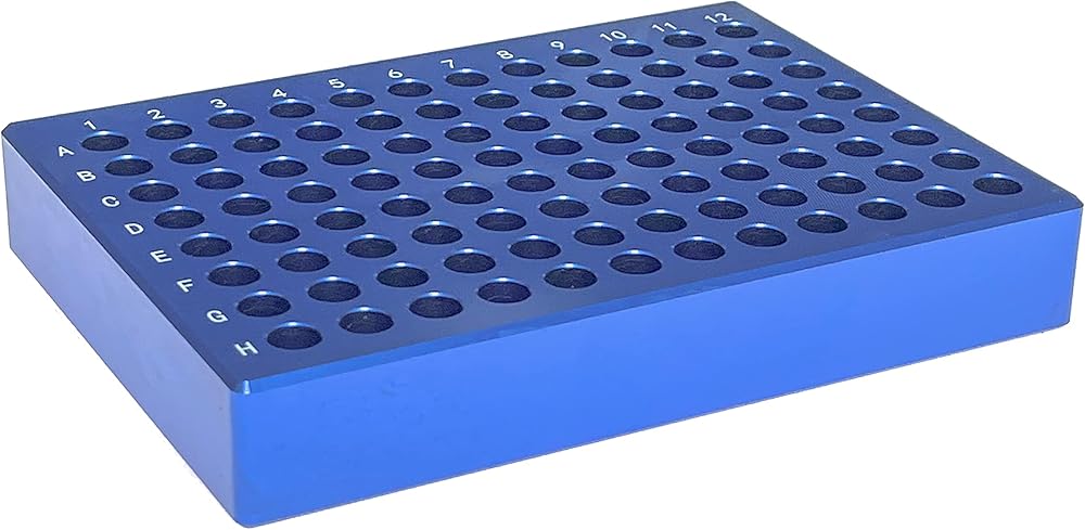 MUHWA 96 كتلة تبريد ألومنيوم جيدة لأنابيب PCR الدقيقة 0.2 مل، 8 × 12 مصفوفة، أزرق، عبوة واحدة
