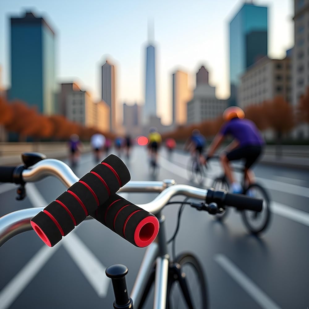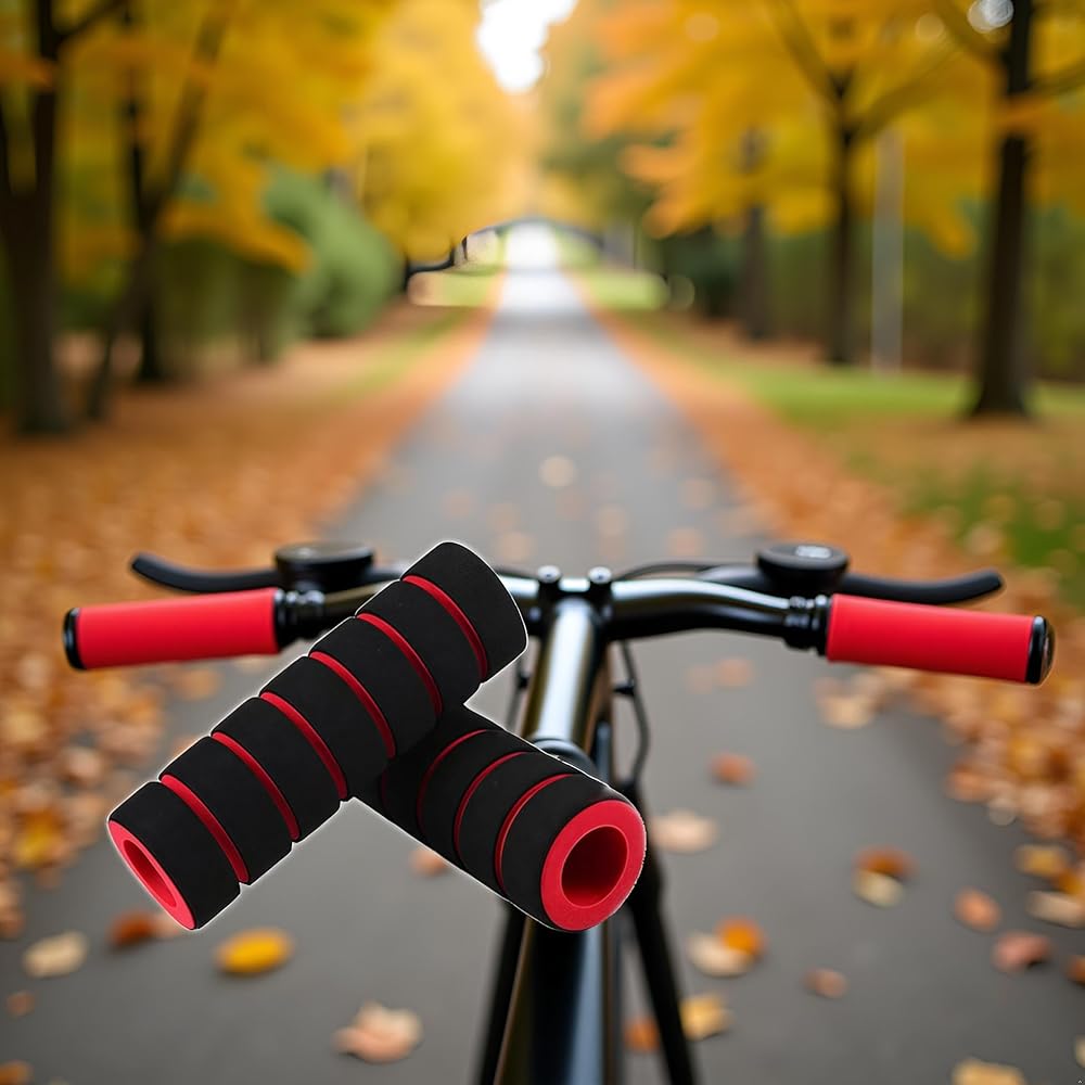 1 Pair Red Non-Slip Foam Handlebar Grips for Bicycle and Motorcycle – Soft, Durable Sponge Grip Covers for Cycling, Road Racing, Brake Lever Protection – Comfortable Handlebar Tapes, Grips