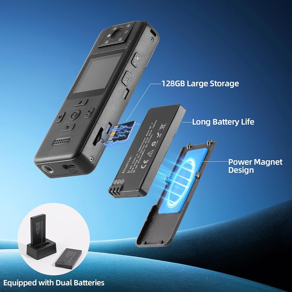 • شاشة ملونة مدمجة عالية الدقة مقاس 1.5 بوصة وتشغيل في الوقت الفعلي على الجهاز: قم بمراجعة وإدارة تسجيلاتك على الفور على شاشة مقاس 1.5 بوصة - لا حاجة إلى هاتف أو كمبيوتر. مثالية لإجراء فحوصات سريعة أثناء المشي لمسافات طويلة أو التنقل أو توثيق الأنشطة اليومية
