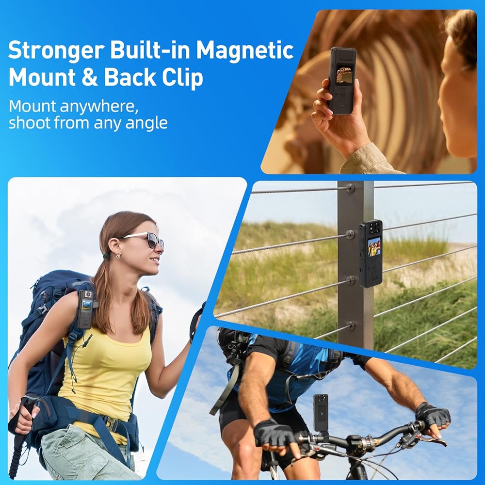 • تركيب مغناطيسي وتصميم مشبك 360 درجة للارتداء الآمن بدون استخدام اليدين: قم بتركيبه في أي مكان - القمصان أو حقائب الظهر أو الخوذات أو مقابض الدراجة - مع ظهر مغناطيسي قوي ومشبك قابل للتعديل بزاوية 360 درجة. لا تقلق أبدًا بشأن سقوطه أثناء الاستخدام النشط