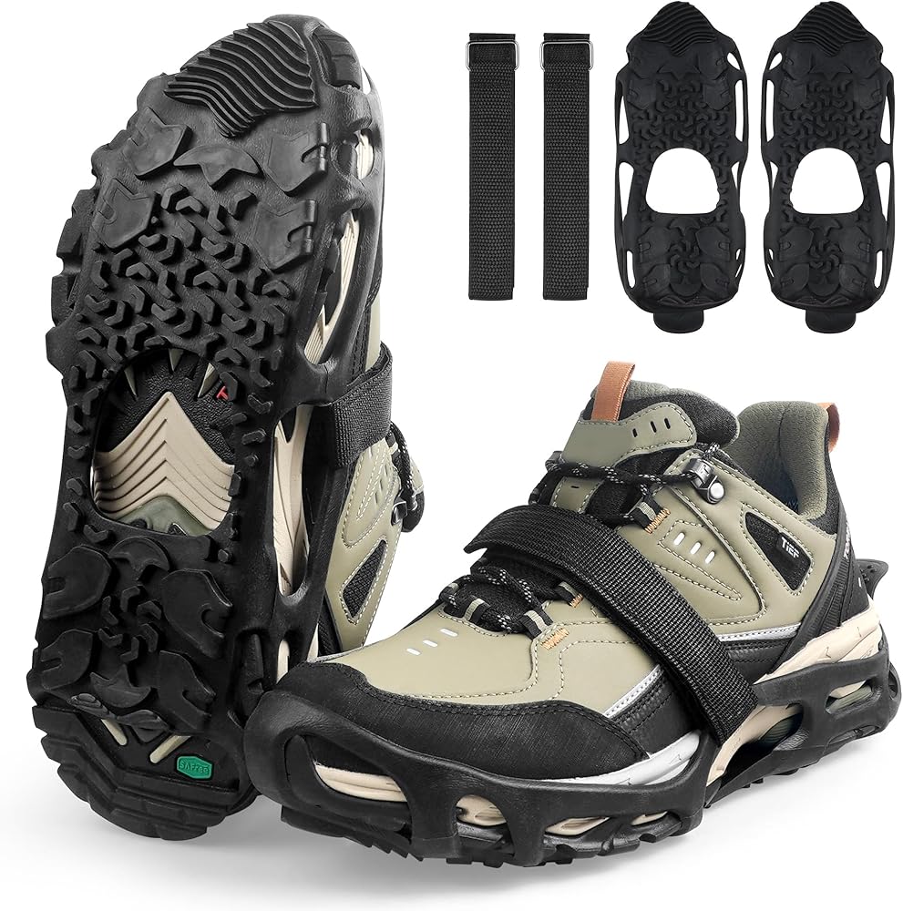 • OUTDOOR AND INDOOR USE: Ice cleats adopt specially designed tread pattern provides maximum slip resistance; Easily transition from outdoors to indoors without removing