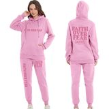 المواد: مجموعة هودي الإيمان فوق الخوف للسيدات مصنوعة من نسيج البوليستر. ناعم وصديق للبشرة، وخفيف الوزن ومريح في الارتداء، يمنحك تجربة ارتداء مريحة. مناسب للخريف والربيع والشتاء.
