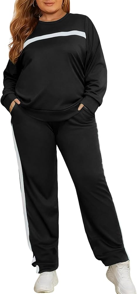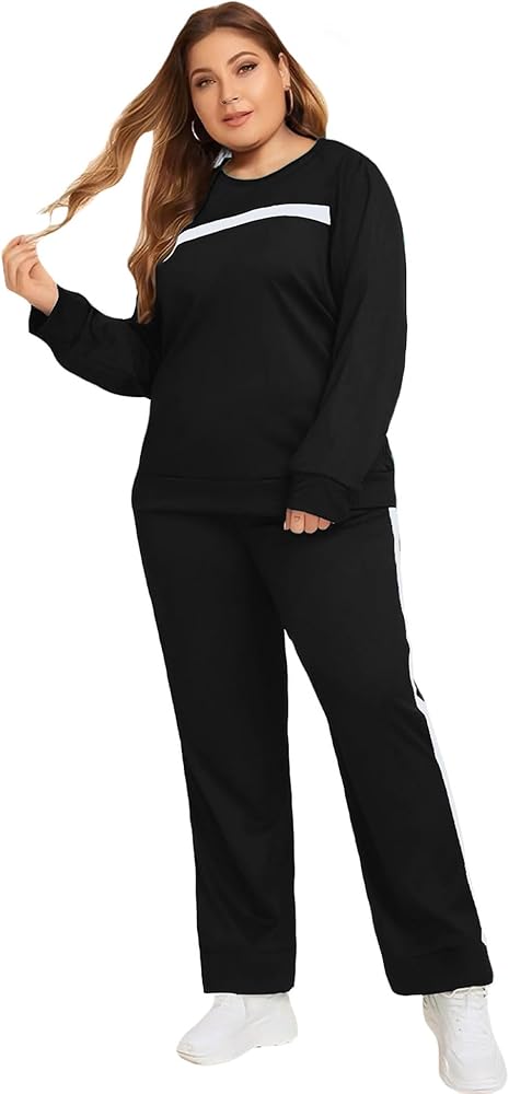 • ③[ المميزات] - بدلات رياضية للسيدات مكونة من قطعتين، مرقعة بكتل الألوان، مخططة، مقاس كبير، جيوب، سراويل طويلة الأكمام، ملابس رياضية للنساء، بدلة ركض، قمصان علوية وسفلية نشطة.