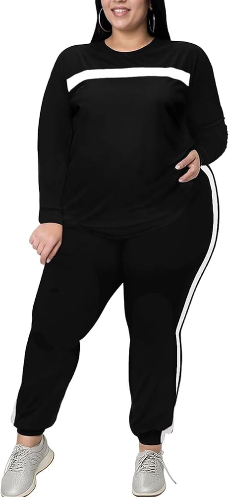 • ①[جودة عالية] - بدلات الركض للسيدات بمقاس كبير مصنوعة من 95% بوليستر و5% ألياف لدنة، مرنة وناعمة ويمكن غسلها في الغسالة. النمط مصنوع من عملية خياطة الربط، وهذا أقل احتمالاً لفقد اللون من النمط المطبوع.