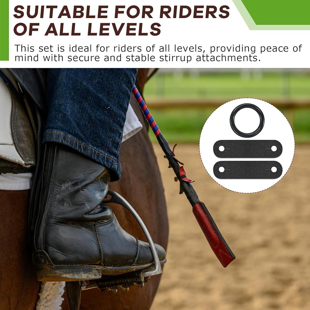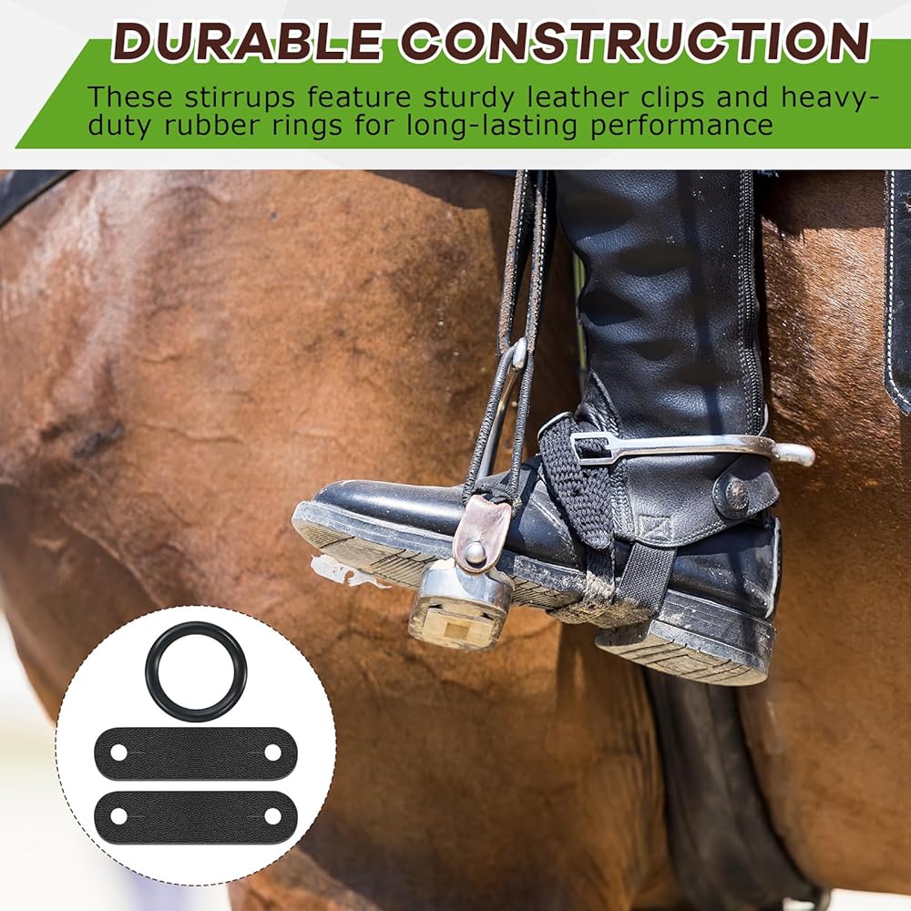 • سهلة التركيب: عند وضعها باستخدام ركاب الطاووس، تعمل هذه الحلقات على تعزيز السلامة؛ وهي مصممة لمنع قدميك من الوقوع في الركائب أثناء السقوط؛ ما عليك سوى تحريك الحلقات المطاطية على قضبان الأمان وتثبيتها بمشابك جلدية للإعداد السريع. ملاحظة: يمكن قطع فتحة الملصق الجلدي بشكل أكبر لتناسب سرجك
