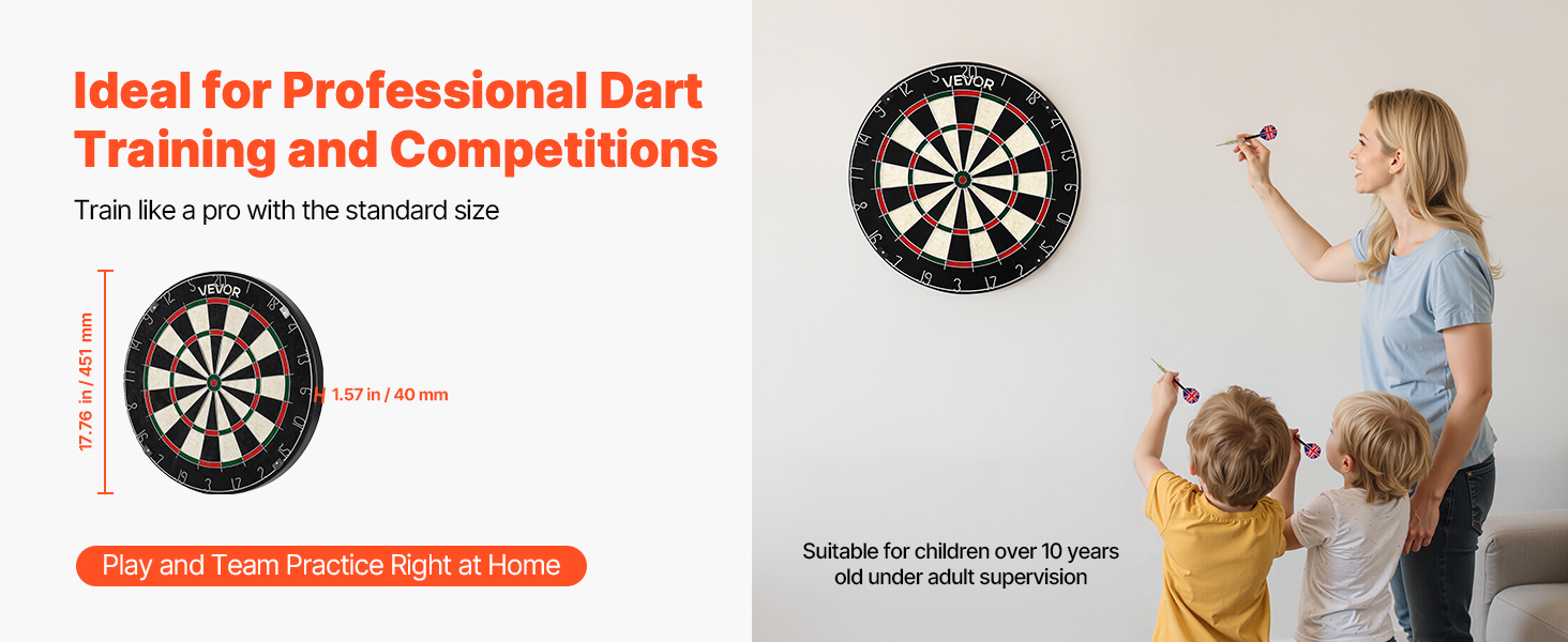الحجم الاحترافي: قطر 17.76 بوصة ومنطقة مستهدفة 13.5 بوصة، تلبي معايير المنافسة الدولية. مثالية للتجمعات العائلية أو الترفيه المكتبي أو حفلات العطلات أو أحداث البار، وتوفر لعبًا وتفاعلًا مليئًا بالمرح - هدية رائعة للعائلة والأصدقاء