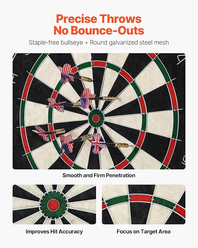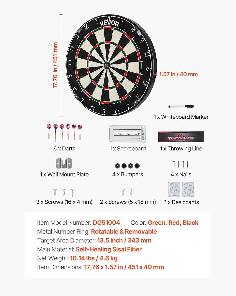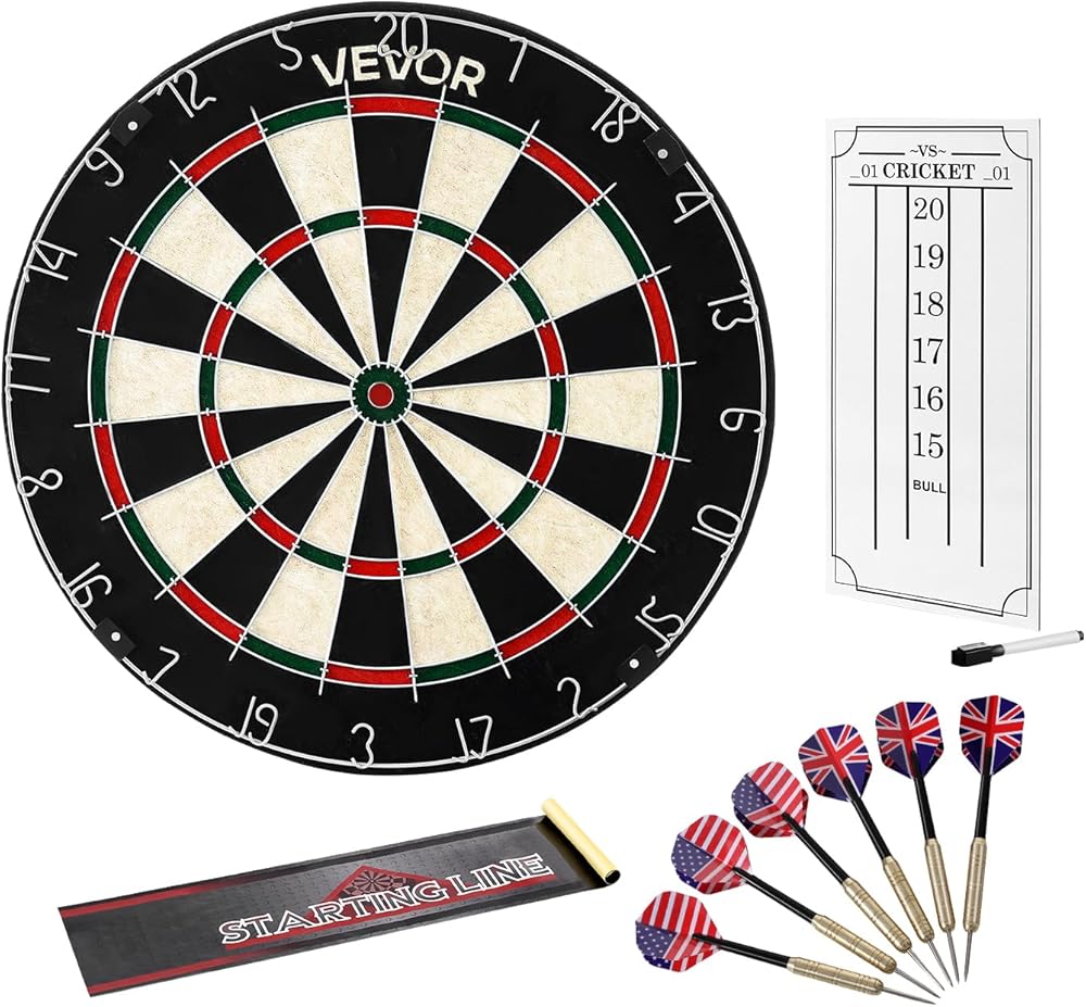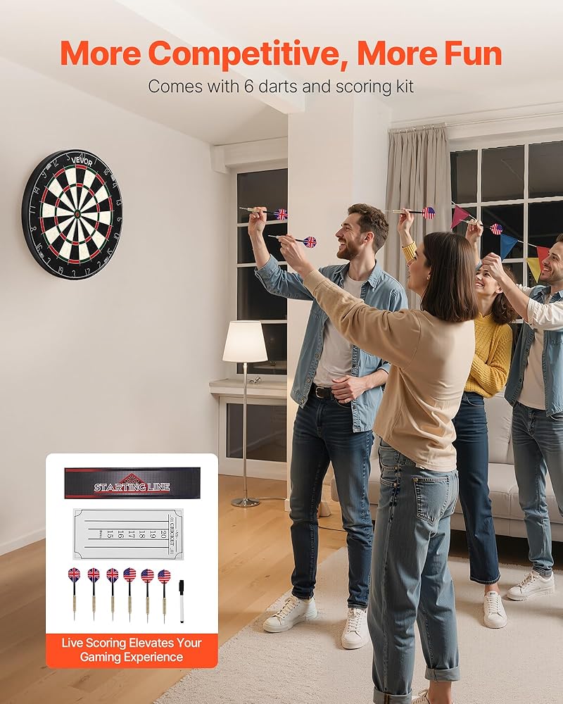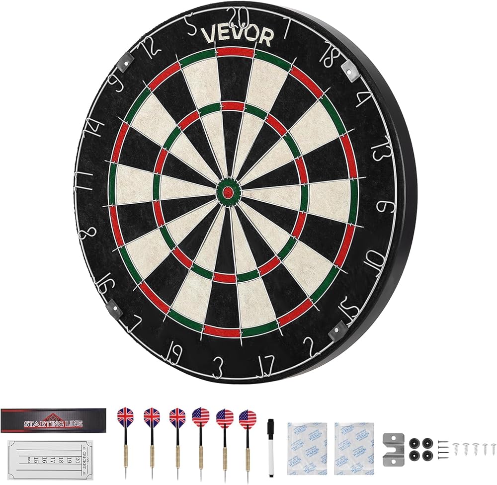 لوح رمي السهام VEVOR مع 6 سهام ومجموعة تسجيل، لوح رمي السهام من ألياف السيزال ذاتية الشفاء مع بولسي خالية من الدبابيس وحلقة أرقام دوارة، مجموعة لوحة رمي السهام ذات رأس فولاذي احترافي 17.7 بوصة لغرف ألعاب الحفلات المنزلية