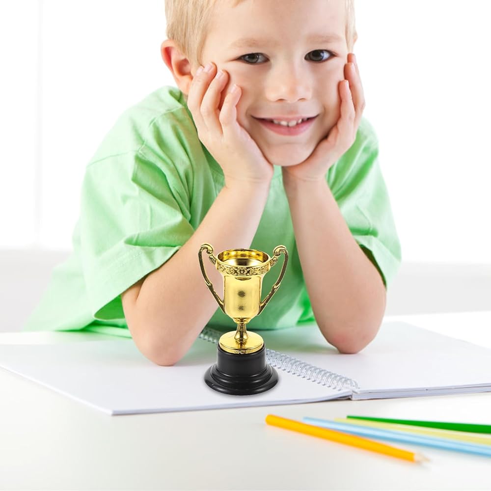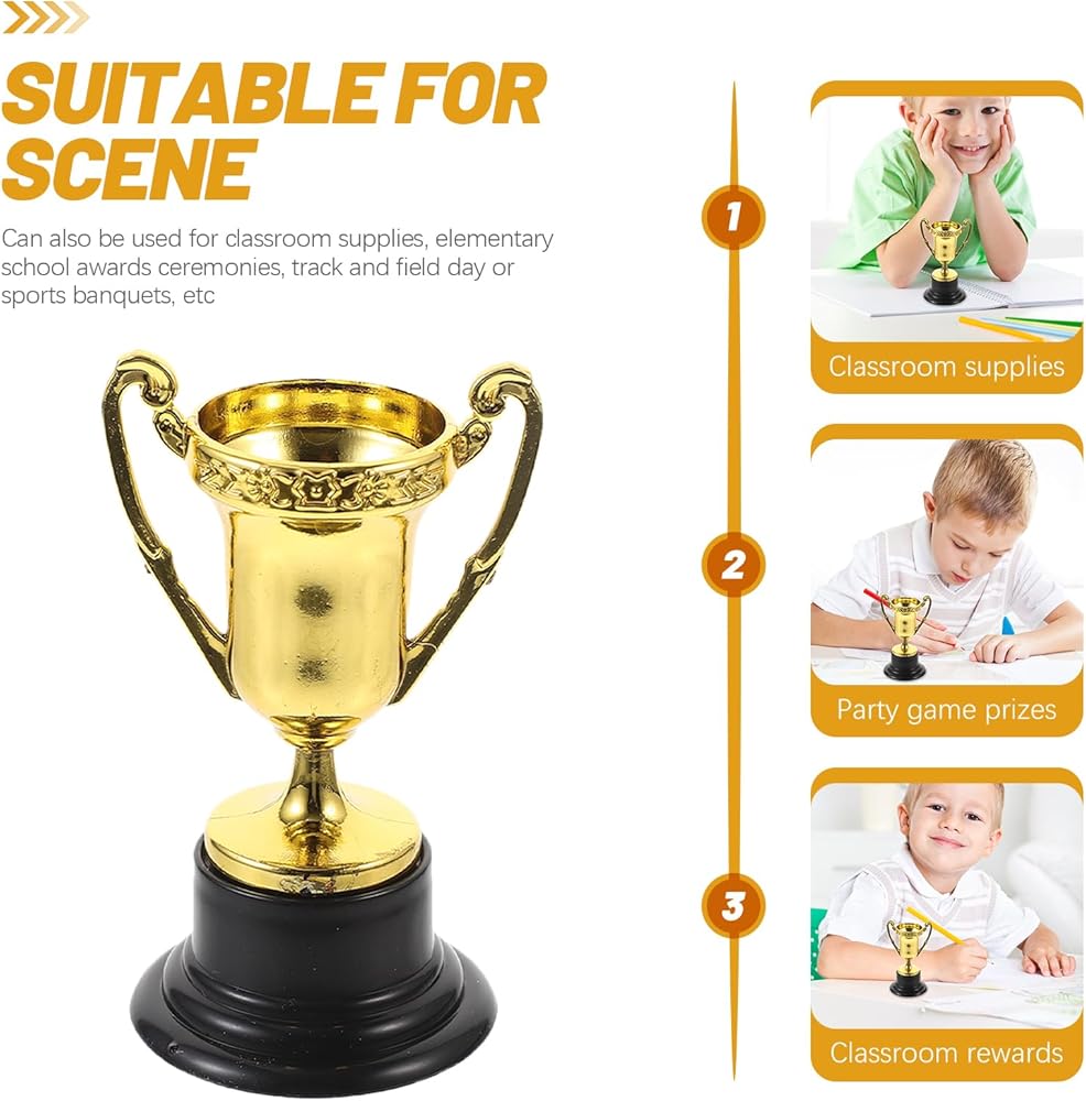 12 قطعة من الجوائز الذهبية البلاستيكية للأطفال، أكواب جوائز المنافسة، لوازم مكافأة لاحتفالات الحفلات، وحفل توزيع الجوائز والتقدير