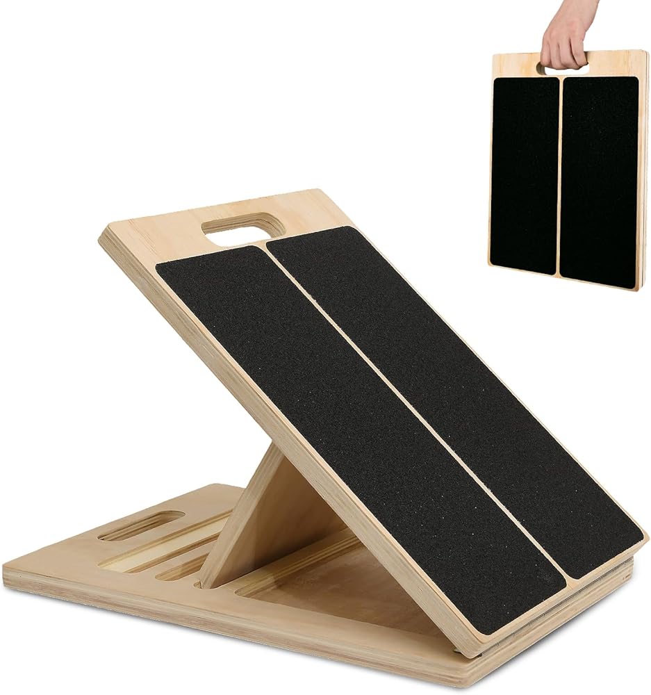 لوح مائل لتمرين تمدد ربلة الساق، لوح خشبي مائل بزوايا قابلة للتعديل وقابل للحمل، ممتد عضلات الساق مضاد للانزلاق للفخذ والساق والركبة والقدمين
