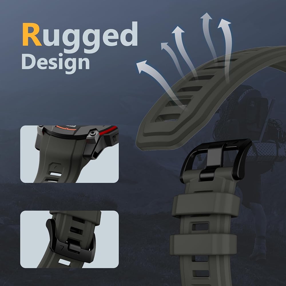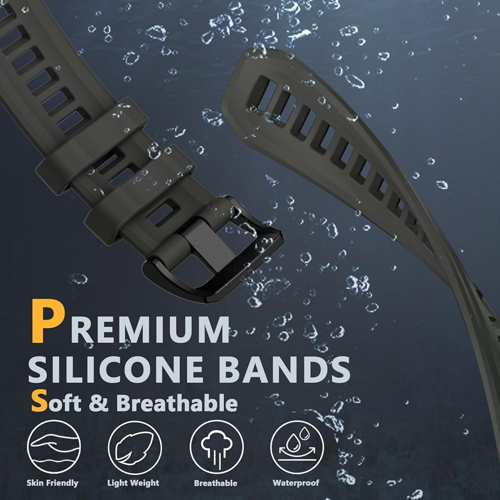 مادة السيليكون الفاخرة: سوار الساعة غريزة 3 المقاوم للماء مصنوع من السيليكون عالي الجودة، وهو ناعم ومريح وخالي من التهيج. يوفر راحة مسامية وصديقة للبشرة تدوم طوال اليوم، بغض النظر عن المكان الذي تأخذك إليه مغامراتك.