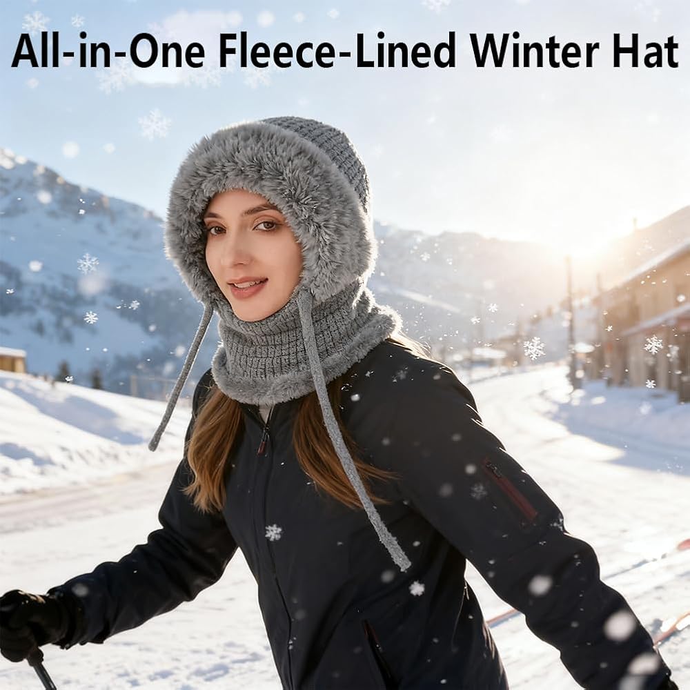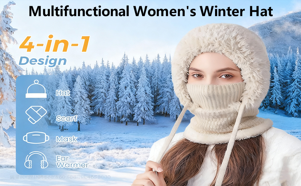 تغطية كاملة للشتاء: حافظ على دفء رأسك ووجهك ورقبتك مع هذه القبعة الصغيرة 3 في 1 للنساء التي تعمل كقبعة ووشاح وتدفئة للرقبة في وقت واحد. مصمم لمنع الرياح الجليدية والثلوج، فهو يوفر الحماية الكاملة والراحة أثناء التزلج أو التزلج على الجليد أو تنقلاتك الشتوية اليومية.