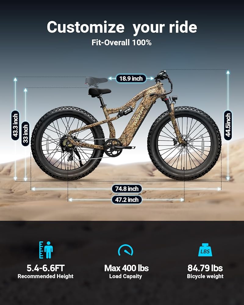 【Flagship Model - Labrador Pro】 PUCKIPUPPY King of All-Terrain Electric Bikes. Powerful motor and 8-speed gearing, 26” * 4” fat tires offer exceptional traction and PUCKIPUPPY's exclusive lateral suspension, built for adventure and comfort across any terrain.