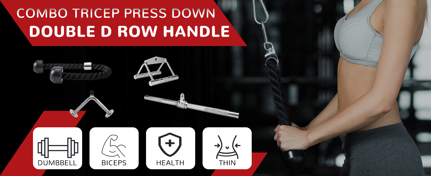 مقبض على شكل حرف V (مقبض مزدوج على شكل حرف D) - مصنوع من الفولاذ الصلب مع لمسة نهائية مزخرفة لقبضة وأمان أفضل أثناء التدريبات. سعة الوزن: ما يصل إلى 800 رطل