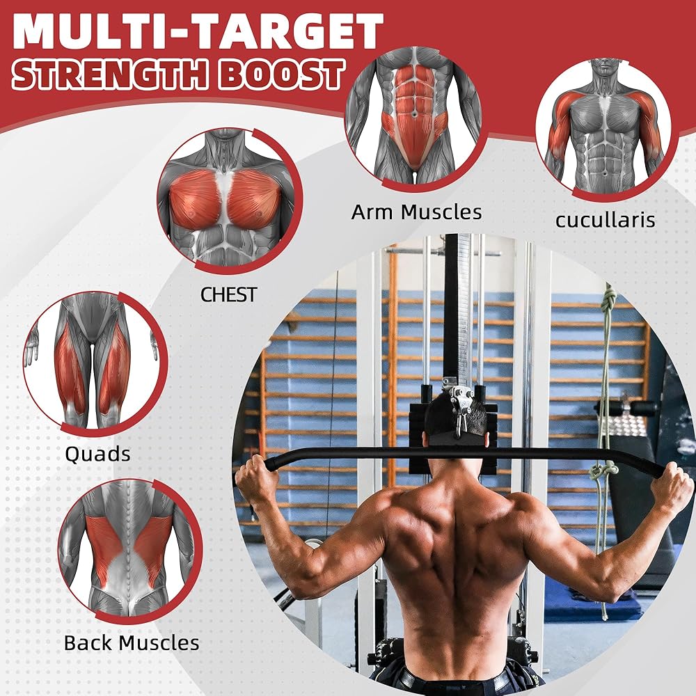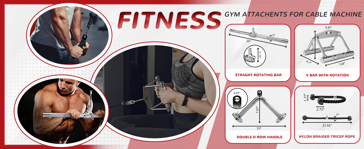 المجموعة الكاملة تتضمن: 1x حبل ثلاثي الرؤوس، 1x مقبض على شكل حرف V، 1x قضيب على شكل حرف V و1x قضيب دوار مستقيم. تصميم عالمي يناسب معظم أنظمة الكابلات
