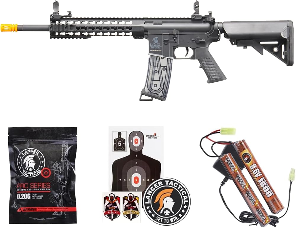 The Generation 2 Lancer Tactical entry level M4 Carbine has an outstanding list of features, taking their already impressive M4 Carbine 10 " KeyMod AEG Rifle to the next level, with YOU along with it! The lightweight ABS construction of the Generation 1 rifle has now been reinforced with a tough nylon polymer, making it able to withstand heavy use in extreme situations while keeping the internals safe and efficient!