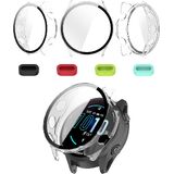 iDaPro comprehensive case with built-in 9H hardness tempered glass screen protector Protects your watch from scratches, drops, and daily wear. The hard shell design maintains full access to all buttons and features while providing a secure fit. As an added bonus, the set comes with four silicone anti-dust plugs to keep your device's ports clean. The slim profile adds minimal bulk to your smartwatch, preserving its sleek appearance while offering maximum protection. Each case is precisely engineered for the watch, ensuring perfect alignment with your device's screen and sensors. The crystal-clear material allows for unobstructed viewing of your display and maintains touch sensitivity for seamless operation.