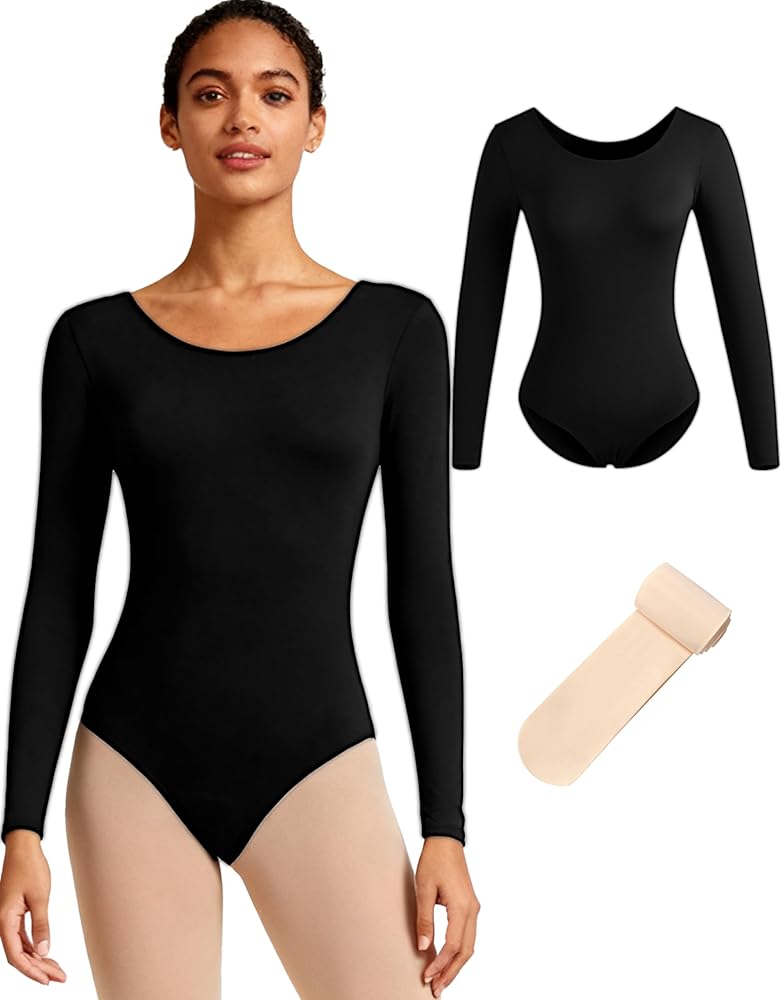 نمط بسيط: ثوب رقص نسائي أسود أساسي مع بطانة أمامية كاملة، خط ساق الباليه، مغرفة من الأمام والخلف، مقاس جذاب وراحة سلسة، ولد للرقص.