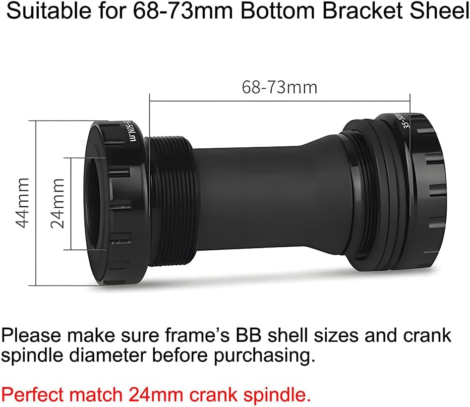 مناسب لواجهة الدعامة السفلية بعرض الهيكل 68-73 مم والقطر الخارجي 44 مم، وقطر عمود دوران الكرنك 24 مم. يرجى التأكد من أحجام غلاف BB وقطر عمود دوران الكرنك قبل الشراء.