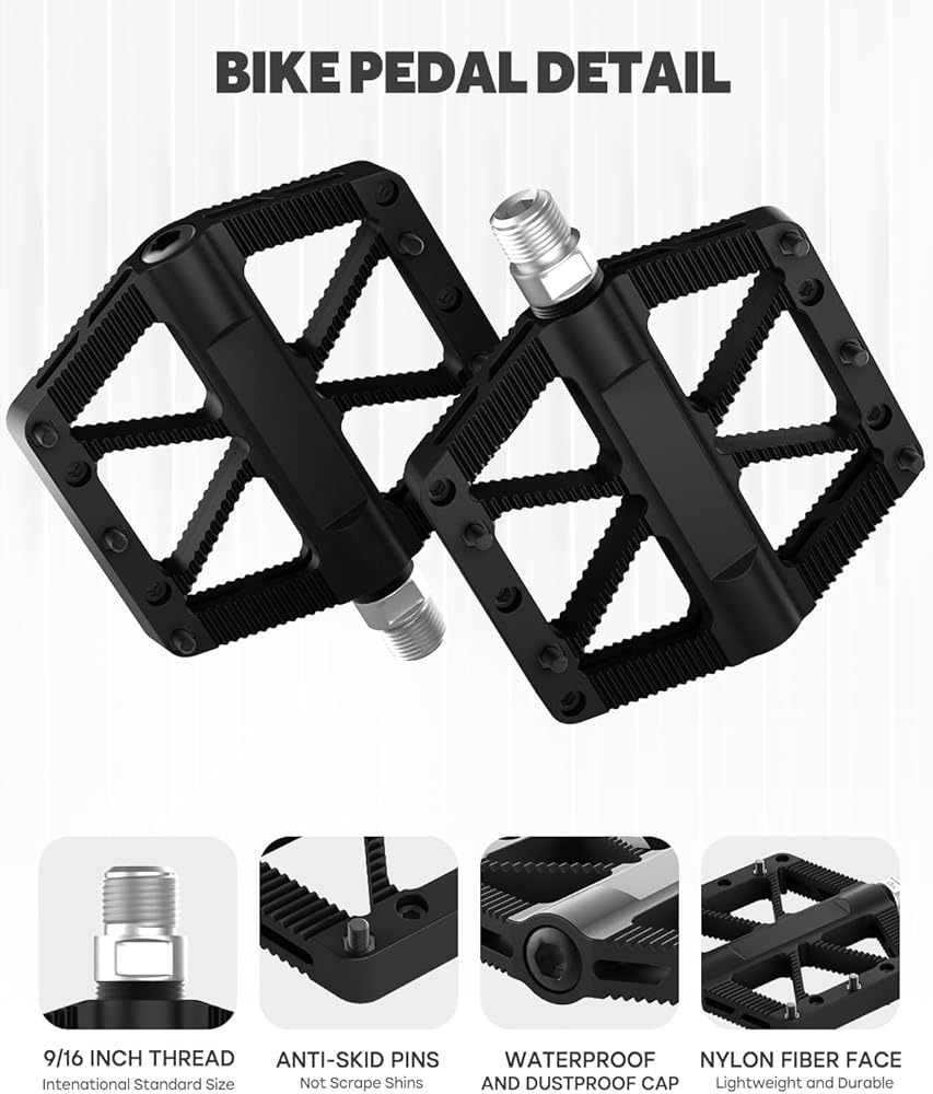 دواسات الدراجة، دواسات الدراجة الجبلية MTB BMX، دواسات دراجة 9/16 بوصة، مركب نايلون خفيف الوزن غير قابل للانزلاق، دواسات متينة تحمل منصة تحمل