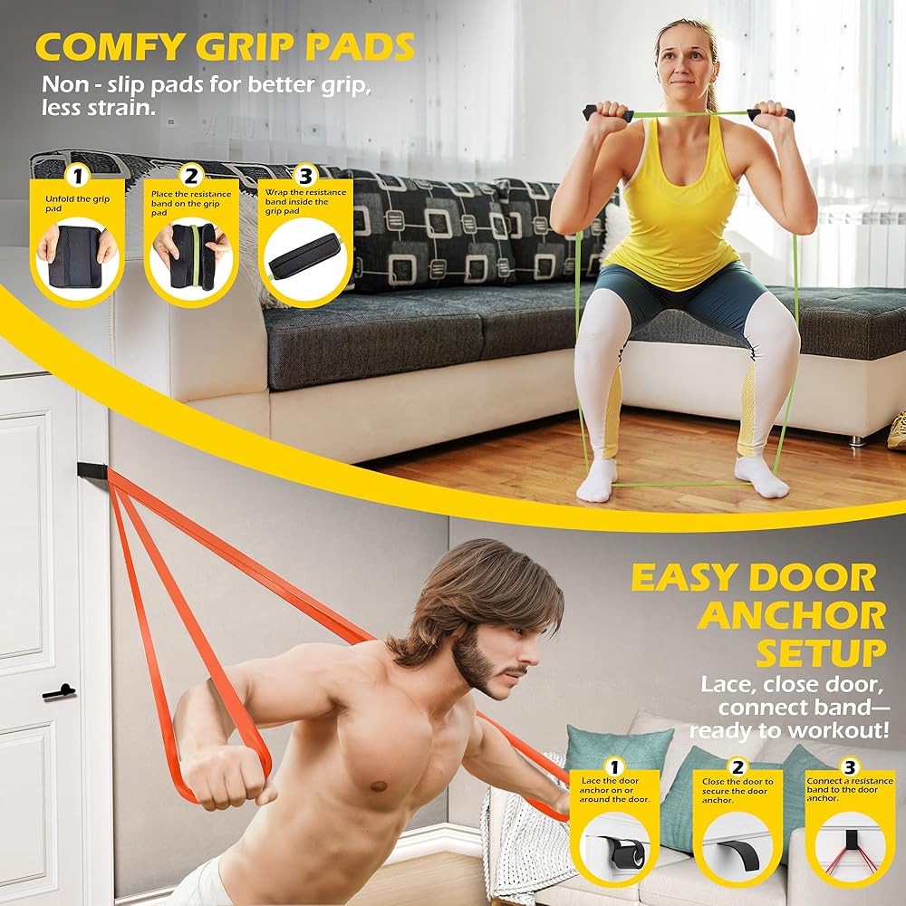 【مجموعة تمرين كاملة】إلى جانب الأربطة الخمسة، تأتي المجموعة مع إضافات عملية لتعزيز تدريباتك: مرساة باب (لتثبيت الأربطة على أي باب قوي، مما يسمح بتمارين مثل ضغط الصدر أو رفع الساق) ووسادات قبضة غير قابلة للانزلاق (للدعم غير القابل للانزلاق أثناء الإمساك أو السحب). بالإضافة إلى ذلك، تتيح لك الحقيبة المحمولة المدمجة حزم كل شيء بسهولة - وهي رائعة للاستخدام في المنزل أو صالة الألعاب الرياضية أو أثناء التنقل.