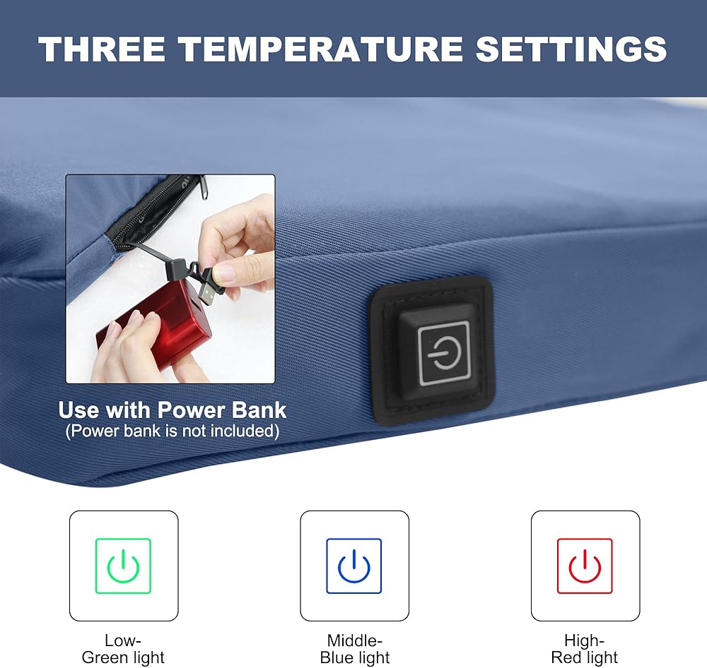 • وسادة مقعد قابلة للتدفئة من مواد عالية الجودة: مصنوعة من نسيج كاتيوني ممتاز وإسفنج ذو ذاكرة عالي المرونة، توفر وسادتنا راحة استثنائية للجلوس لفترات طويلة مع الحفاظ على الشكل المثالي.