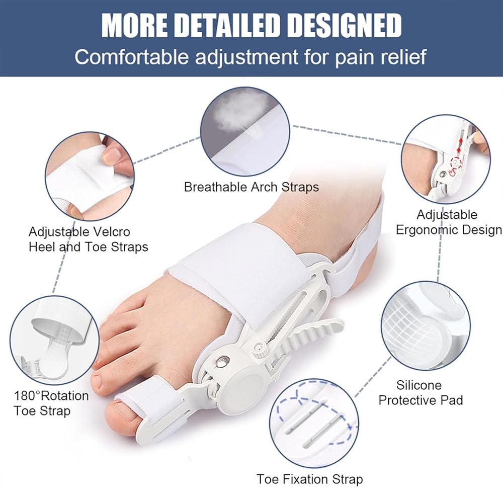 تصميم سحب مطور: يتميز مصحح الورم للنساء والرجال بتصميم سحب فريد، مما يحافظ على أداة تمليس إصبع القدم الكبيرة بعيدًا عن أروح إبهام القدم وأصابع القدم المتداخلة وأصابع القدم المطرقة وأصابع القدم الملتوية ومشاكل القدم الأخرى. يسمح مقبض السحب القابل للتعديل بتعديلات زاوية دقيقة بناءً على شدة الورم. مع دوران مرن بزاوية 40 درجة، يقوم هذا المصحح بإعادة ضبط أصابع القدم الكبيرة على وضعها الطبيعي