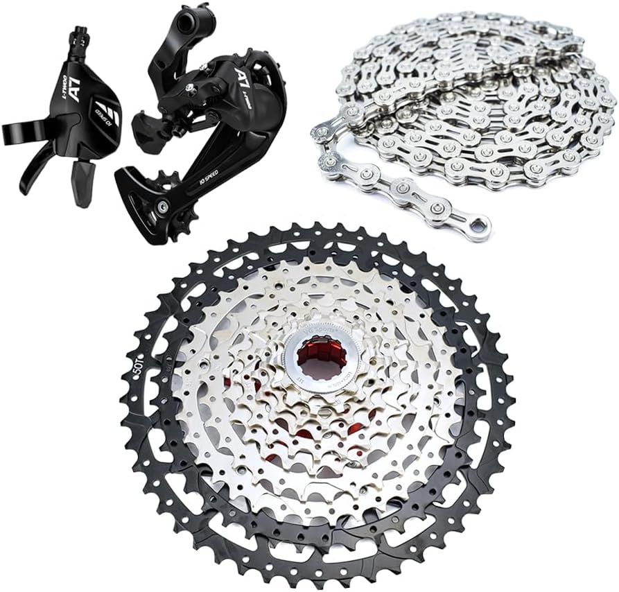 - 【Groupset】Contains 10 speed chain, 10 speed 11-50t cassette, 1x10 speed rear derailleur and shifter. Suitable for 1x 10 speed mountain bike.