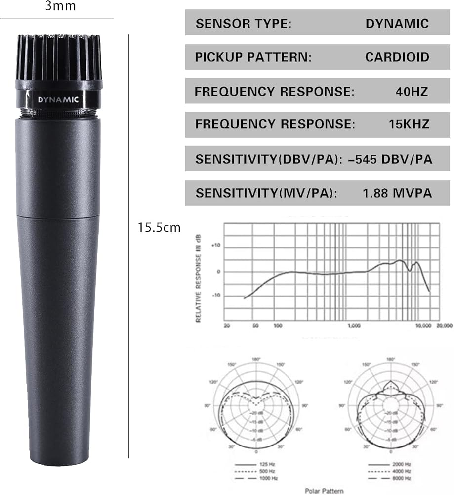 Microphone Type: Dynamic wired cardioid unidirectional microphone designed for clear and focused sound capture