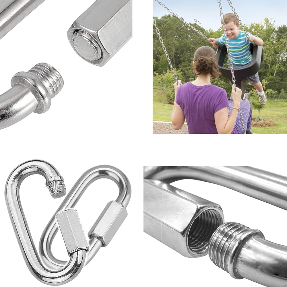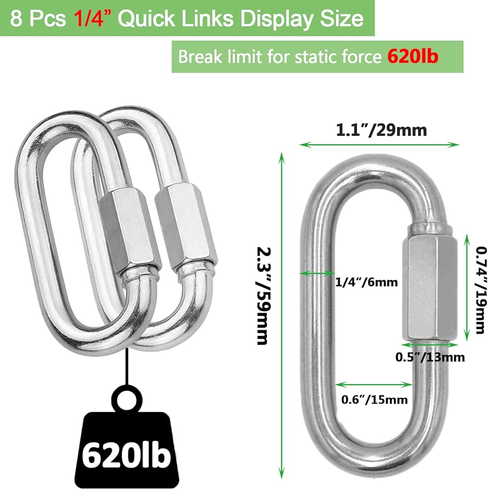 8 حزم وصلة سريعة شديدة التحمل ، 1/4 بوصة سلسلة الفولاذ المقاوم للصدأ ، حلقة تثبيت على شكل M6 D مع سعة 600 رطل ، موصل سلسلة ربط سريع لحلقة التسلق والتخييم والأرجوحة والمعدات الخارجية