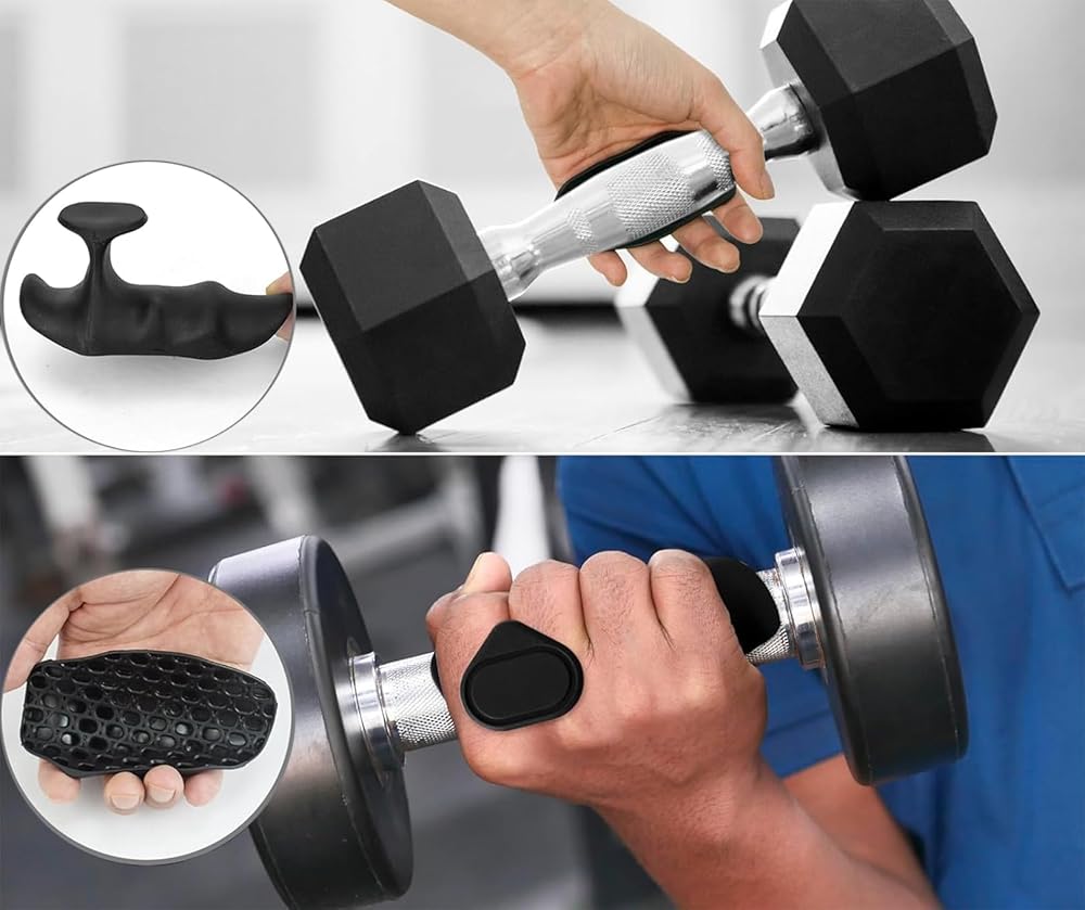 Non-Slip Rubber for Maximum Grip: Made with high-durability rubberfeaturing a textured anti-slip surface, ensuring a firm hold on dumbbells,barbells, and pull-up bars, even with sweaty hands.