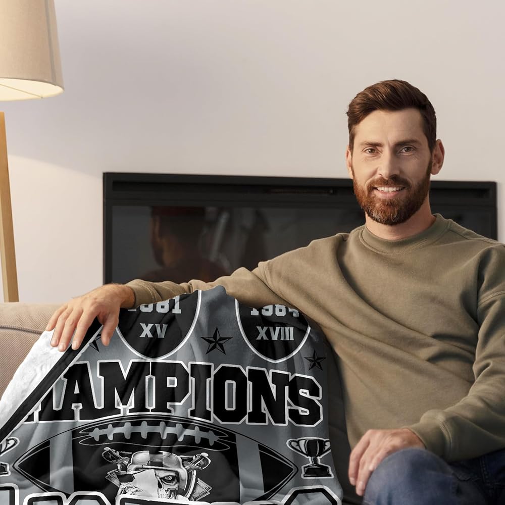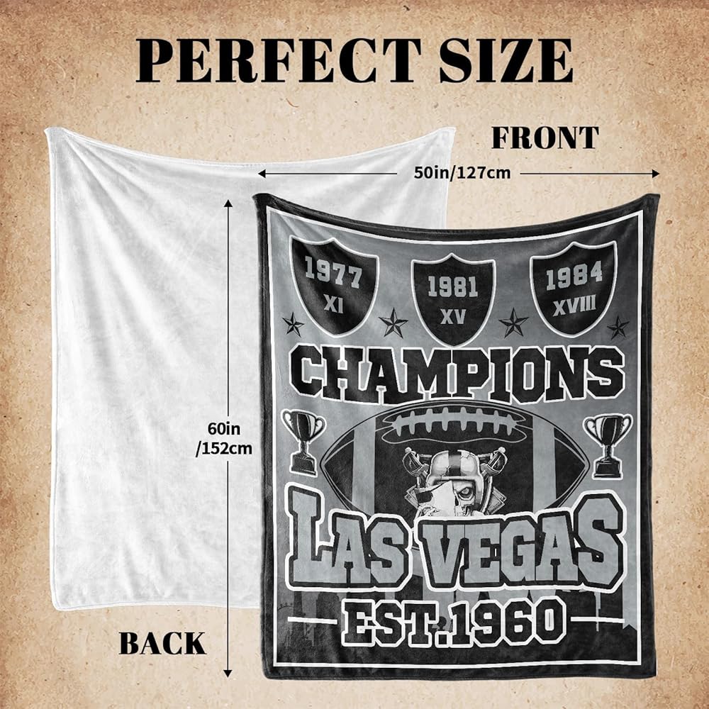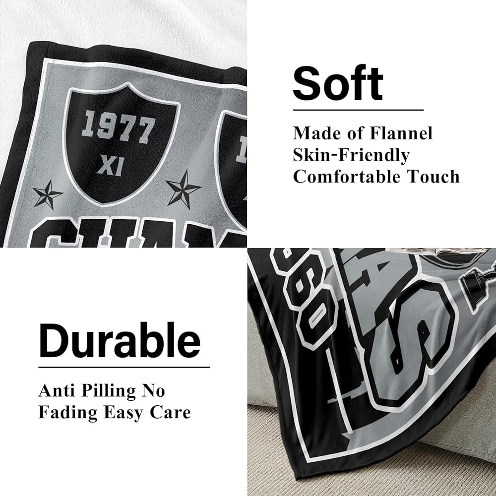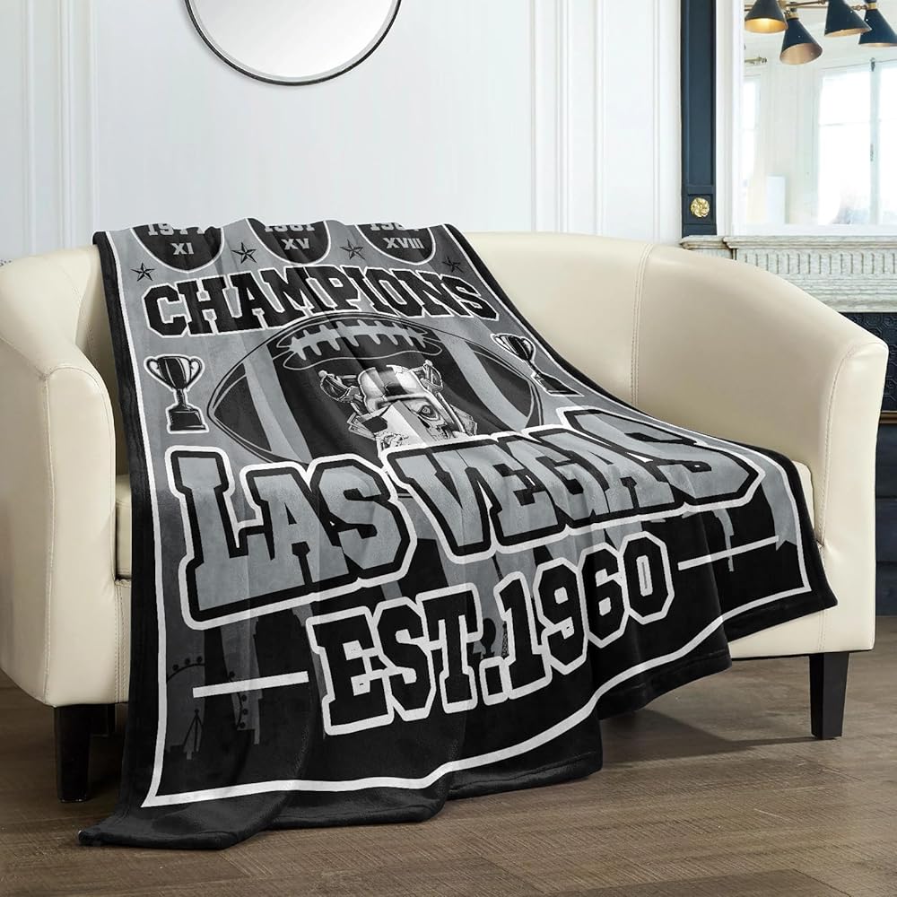هدايا كرة القدم للمدينة، بطانية للمدينة، هدايا للرجال، بطانية رمي سوداء فضية مقاس 60 بوصة × 50 بوصة، فلانيل خفيفة الوزن