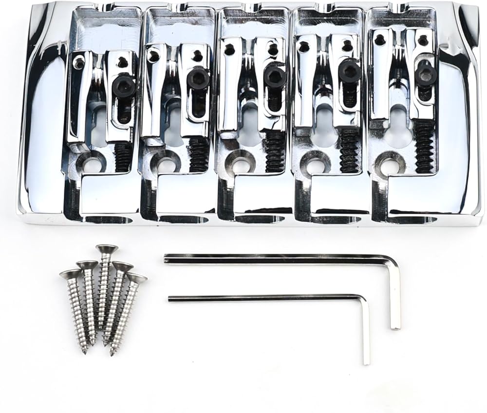 • Package includes: 1 chrome electric bass hardtail bridge, 1 hex key, and 5 mounting screws. It is extremely easy to install, making it suitable for luthiers and DIY enthusiasts.If you have any questions, please contact us