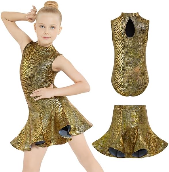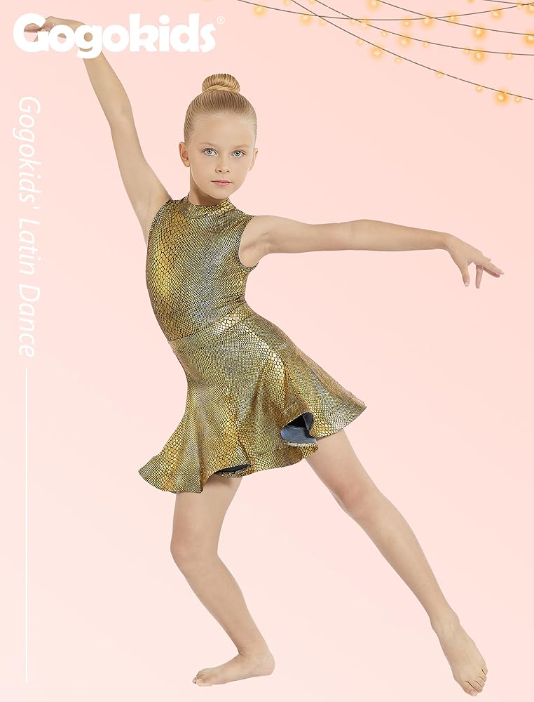 • 2Pcs Dancewear Sets: Gogokids girls dace dresses include a sleek sleeveless leotard paired and a separate short Latin skirt. This practical design allows for quick changes and easy mixing and matching with other dancewear
