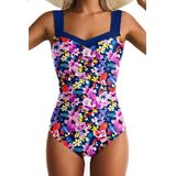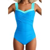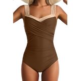 بدلة سباحة قطعة واحدة بأشرطة واسعة: حزام كتف عريض، رقبة مربعة، قصة ظهر مستقيمة عالية، تخلق نمطًا قديمًا، تمنح شخصيتك الأناقة والسحر. اصنع نمطًا فريدًا