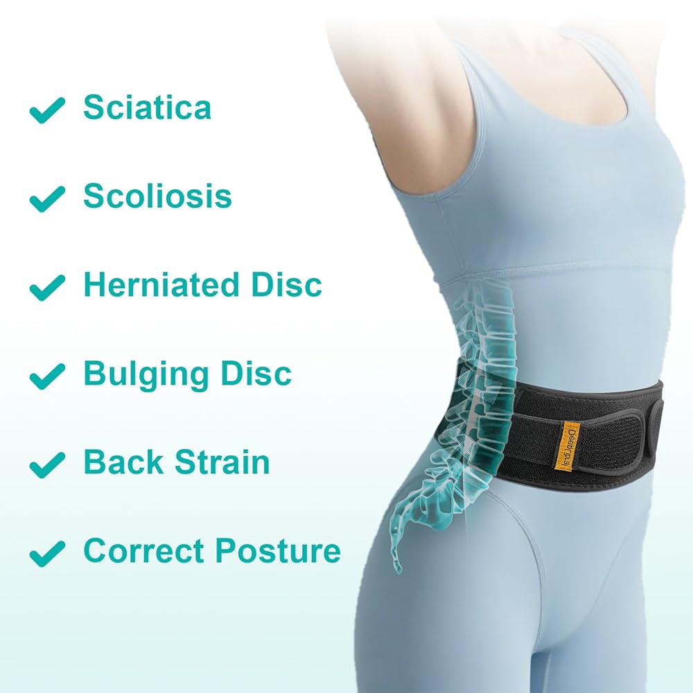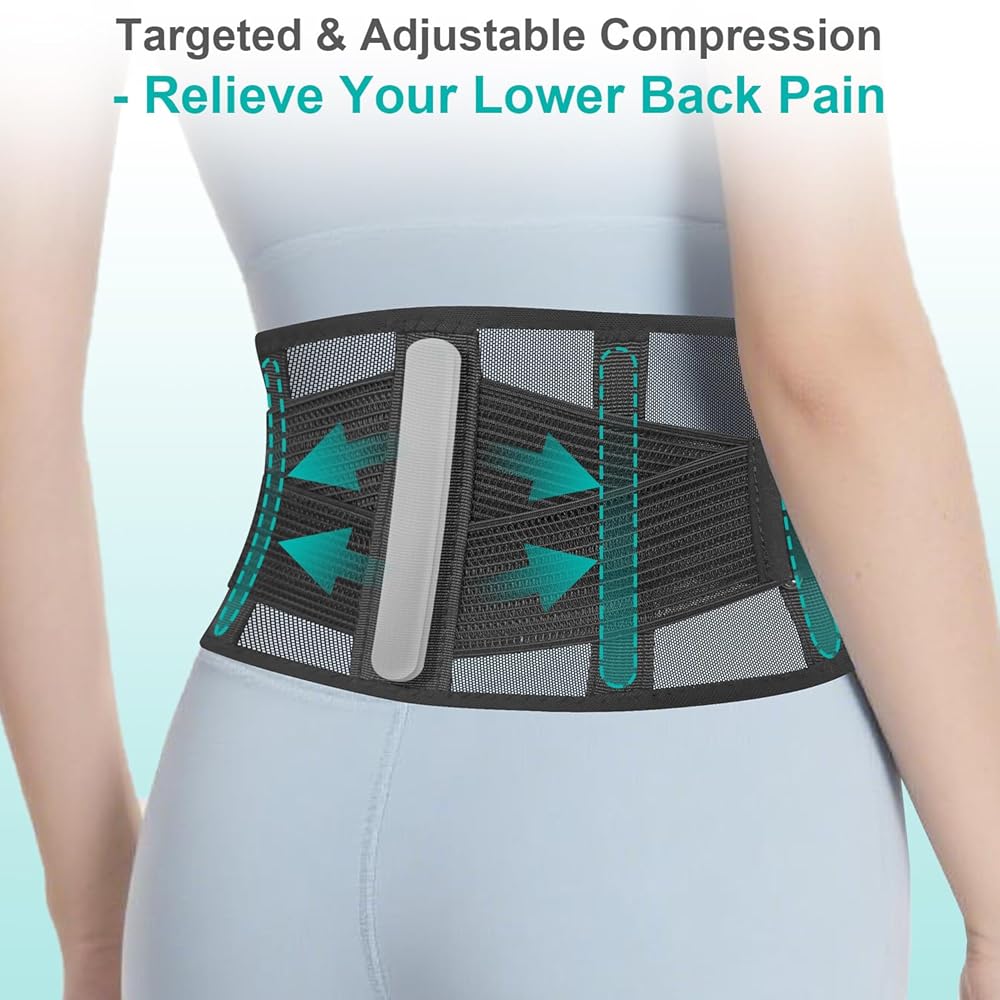 • [Breathable-Stay Cool All Day] - Our back brace for lower back pain is made of ultra-thin breathable mesh that promotes air circulation and effectively prevents overheating, keeping you cool even during long periods of wear, making it ideal for both indoor and outdoor activities.