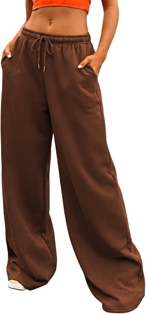 Wide Leg Sweatpants Women Fall Drawstring Elastic Waist Straight Baggy Lounge Pants Causal Joggers with Pockets
