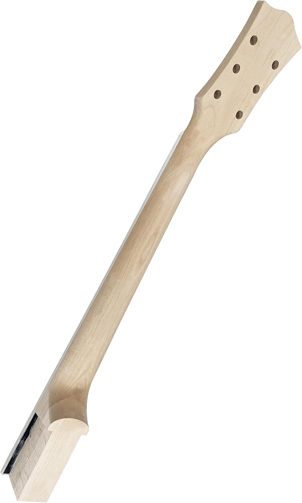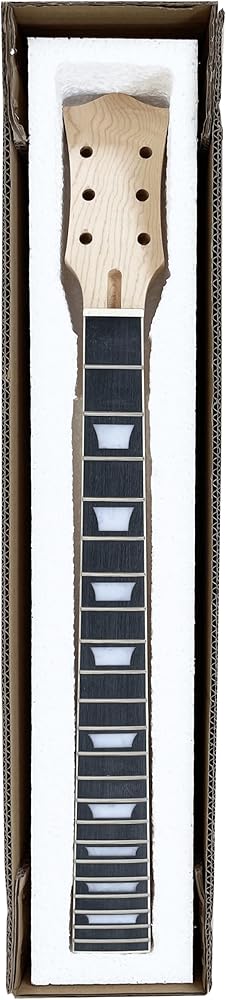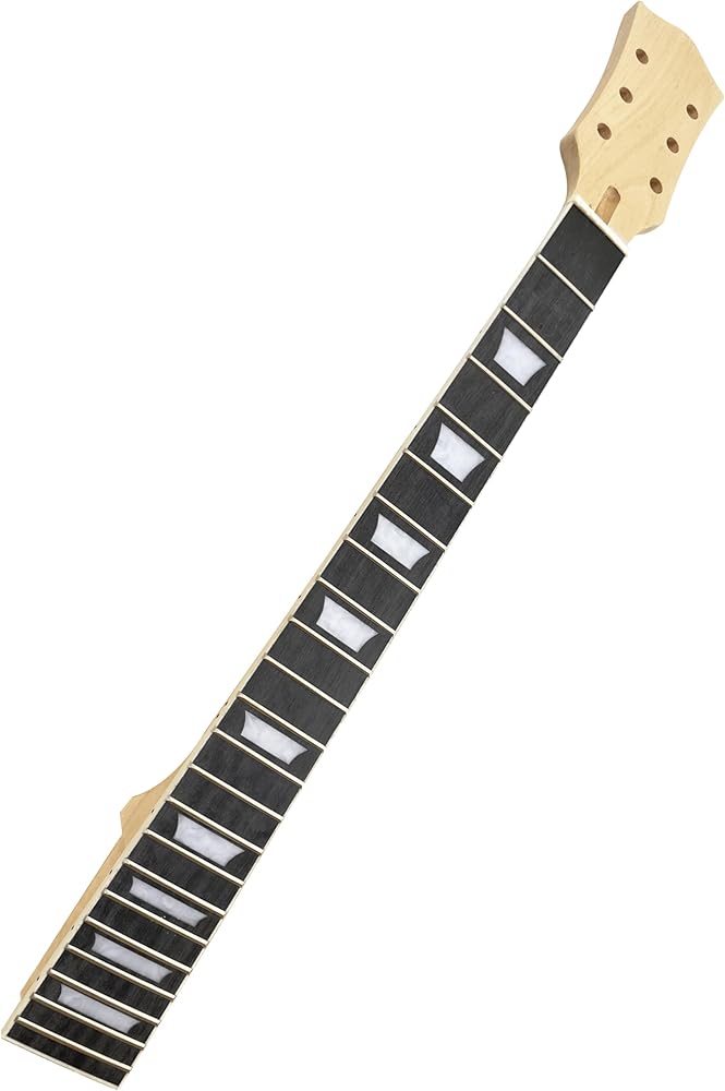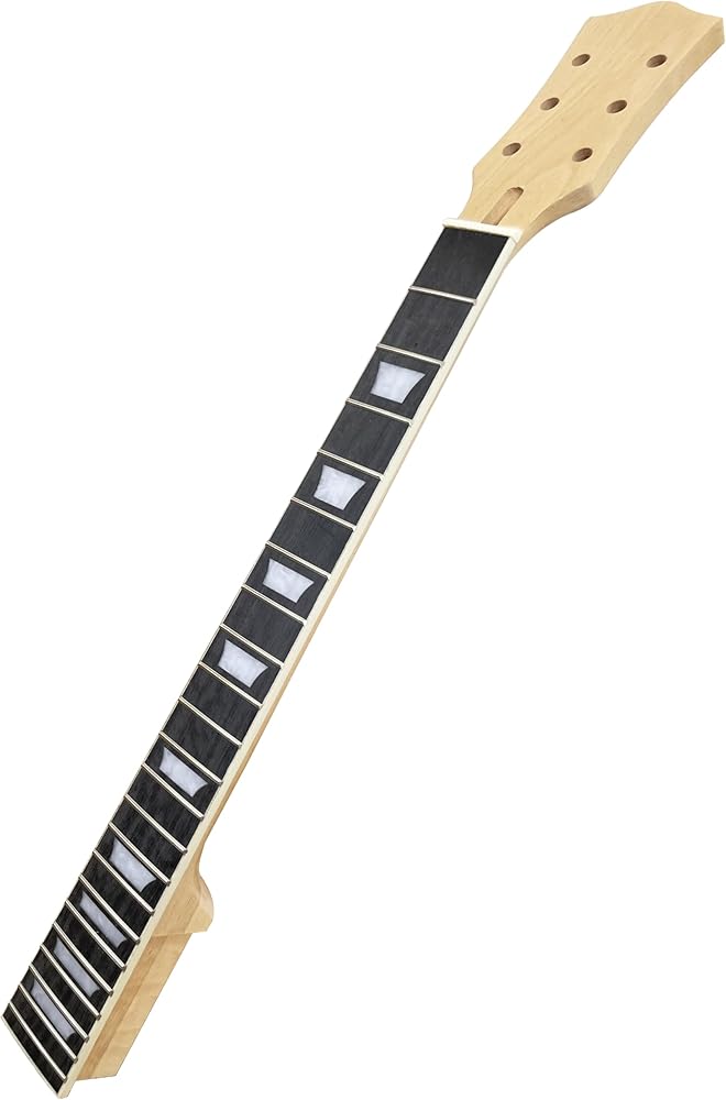 Designed for LP electric guitar neck replacement with a natural finish and white trapezoid inlay.