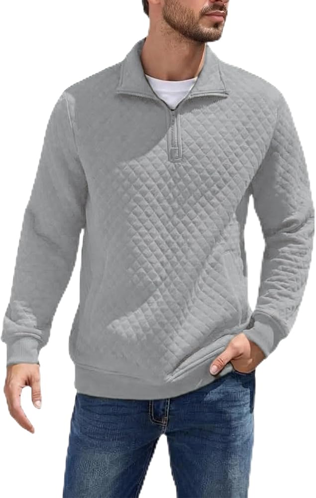 تصميم فريد: تصميم سويت شيرت رجالي بسحاب ربع في ياقة واقفة، وأكمام طويلة، ورقبة على شكل حرف V، وملمس هندسي، وأساور أكمام وحاشية مضلعة وجيبين جانبيين لجلب أشياء صغيرة مثل المفاتيح، والهاتف، والمحفظة، وما إلى ذلك. يضيف خط العنق العالي لمسة من الرقي، لا تخرج عن الموضة أبدًا.