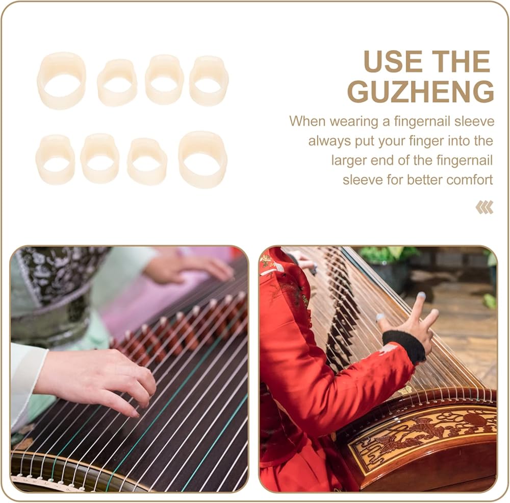 • Size: 2.00X1.50X1.00cm/ 0.79X0.59X0.39in. There are two sets of guzheng nail sets, four on each of the left and right hands. With these covers, it will bring great convenience to guzheng practice.
