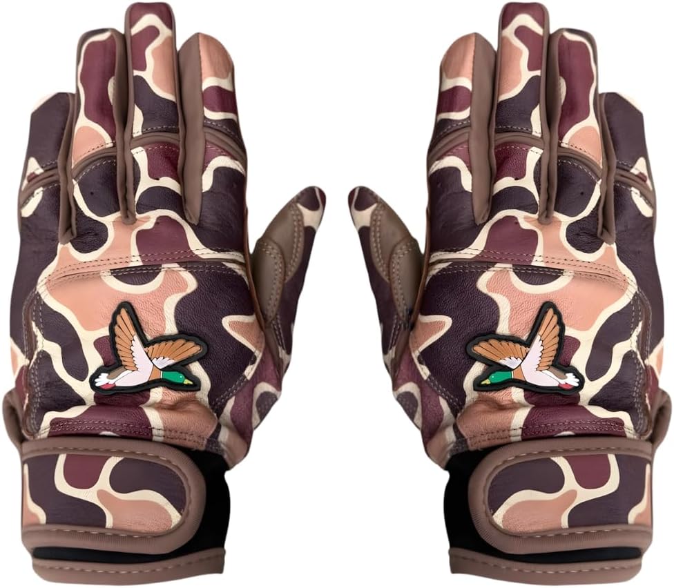 Step up to the plate with confidence in the Duck Hunter Baseball Batting Gloves, built for hitters who demand both performance and style. Made from premium leather, these gloves provide superior grip, durability, and a professional feel. High-density padding and reinforced fingers protect against impact while reducing fatigue, and breathable mesh panels keep your hands cool during long games. Featuring a bold camouflage design with duck embroidery, they stand out from ordinary gloves and bring personality to your gear. With an ergonomic fit and secure wrist straps, Duck Hunter batting gloves deliver comfort, control, and long-lasting performance the perfect choice for players at every level.